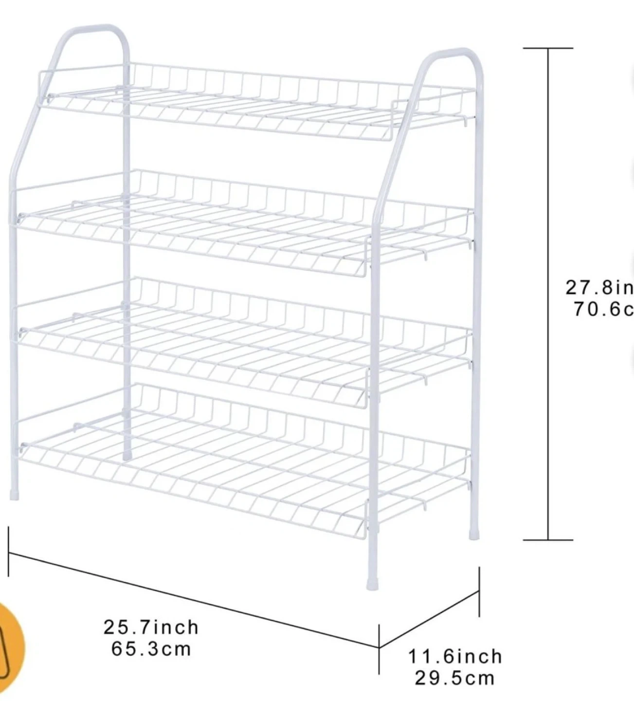Clean and practical 4-tier white metal shoe rack, perfect for organizing shoes and small accessories. Barely used (only 4 months) and in excellent condition.