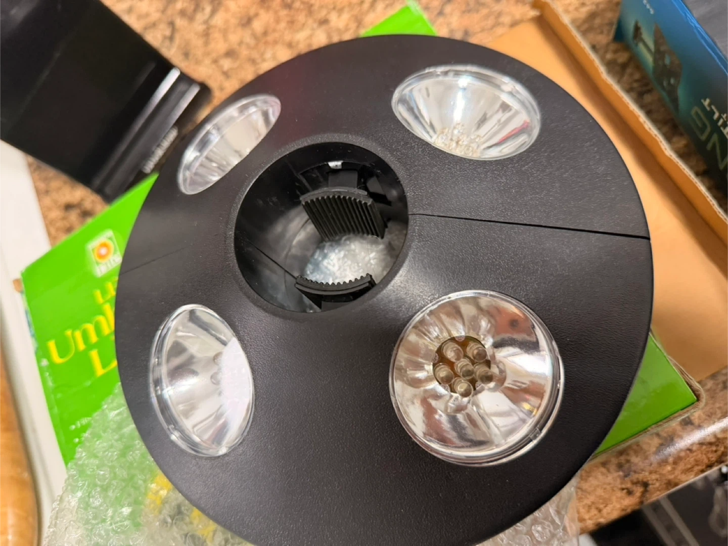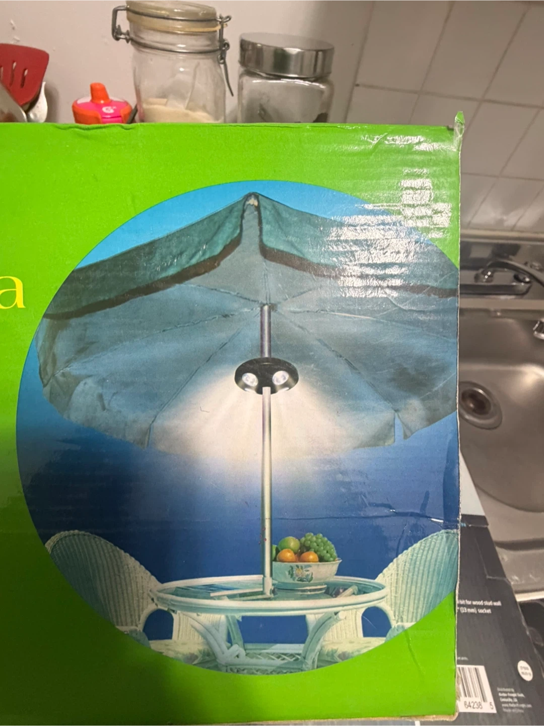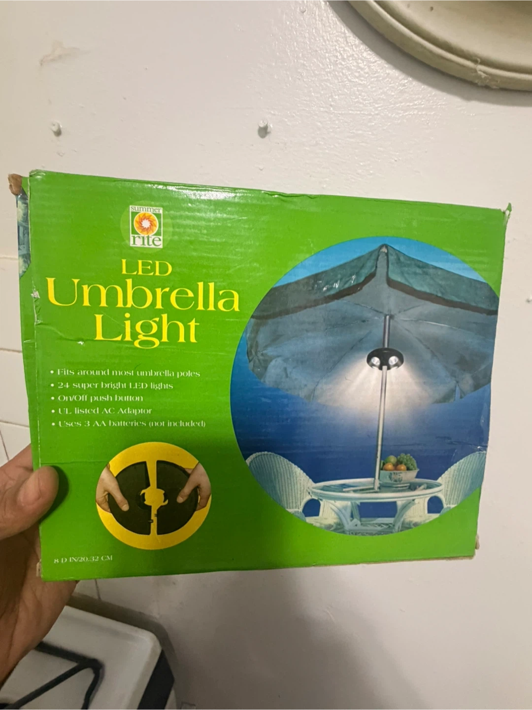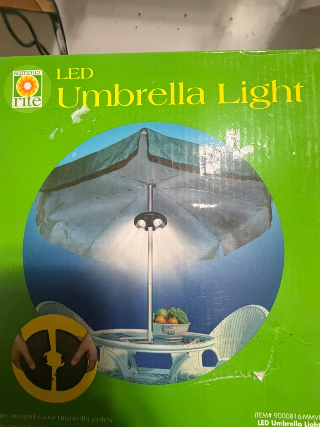 This patio umbrella light illuminates your outdoor space with four LED lights. It attaches to your umbrella pole for convenient lighting. It requires 3 AA batteries, not included.