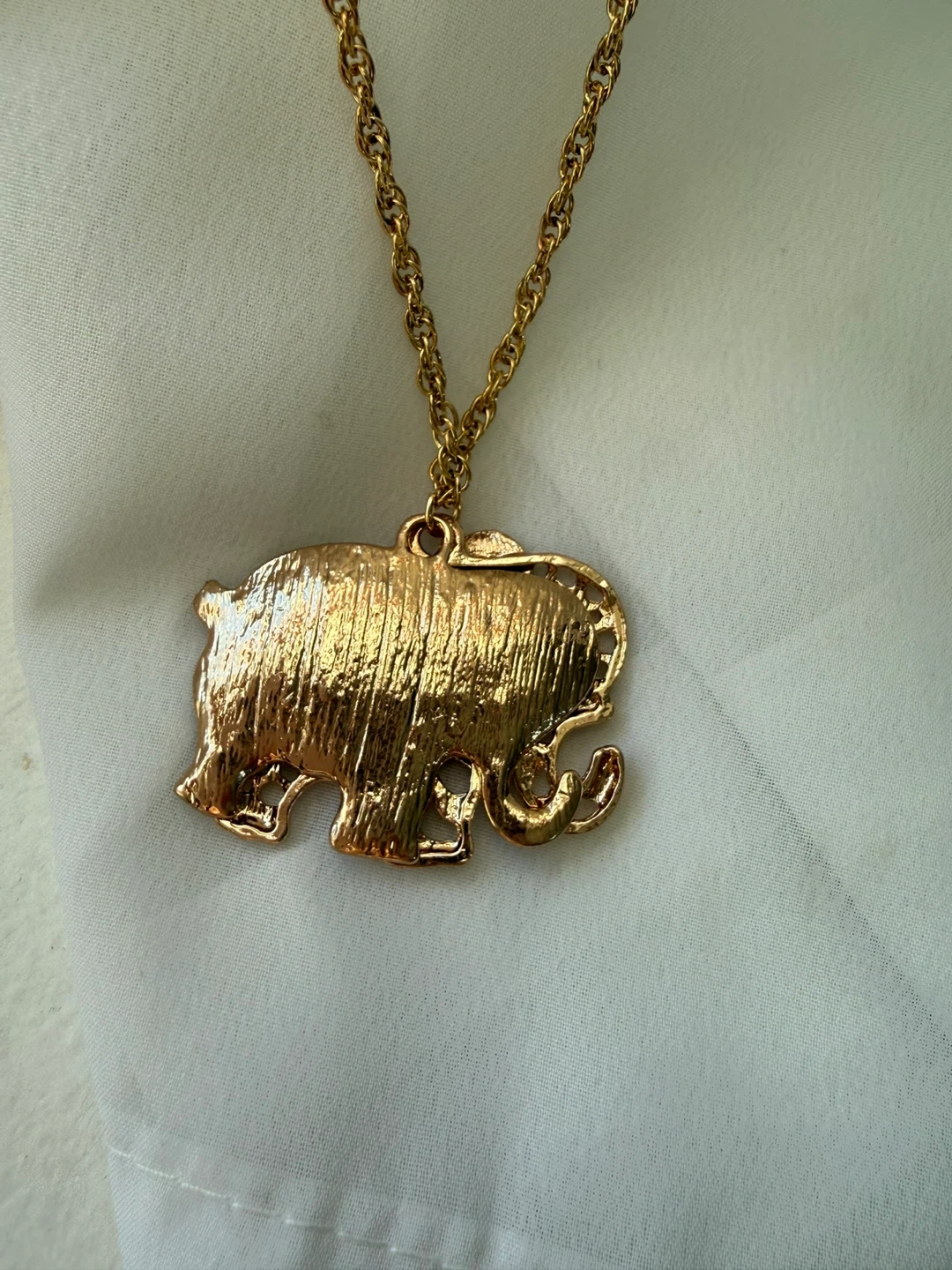 Gold Tone Elephant Pendant Necklace with Rhinestones