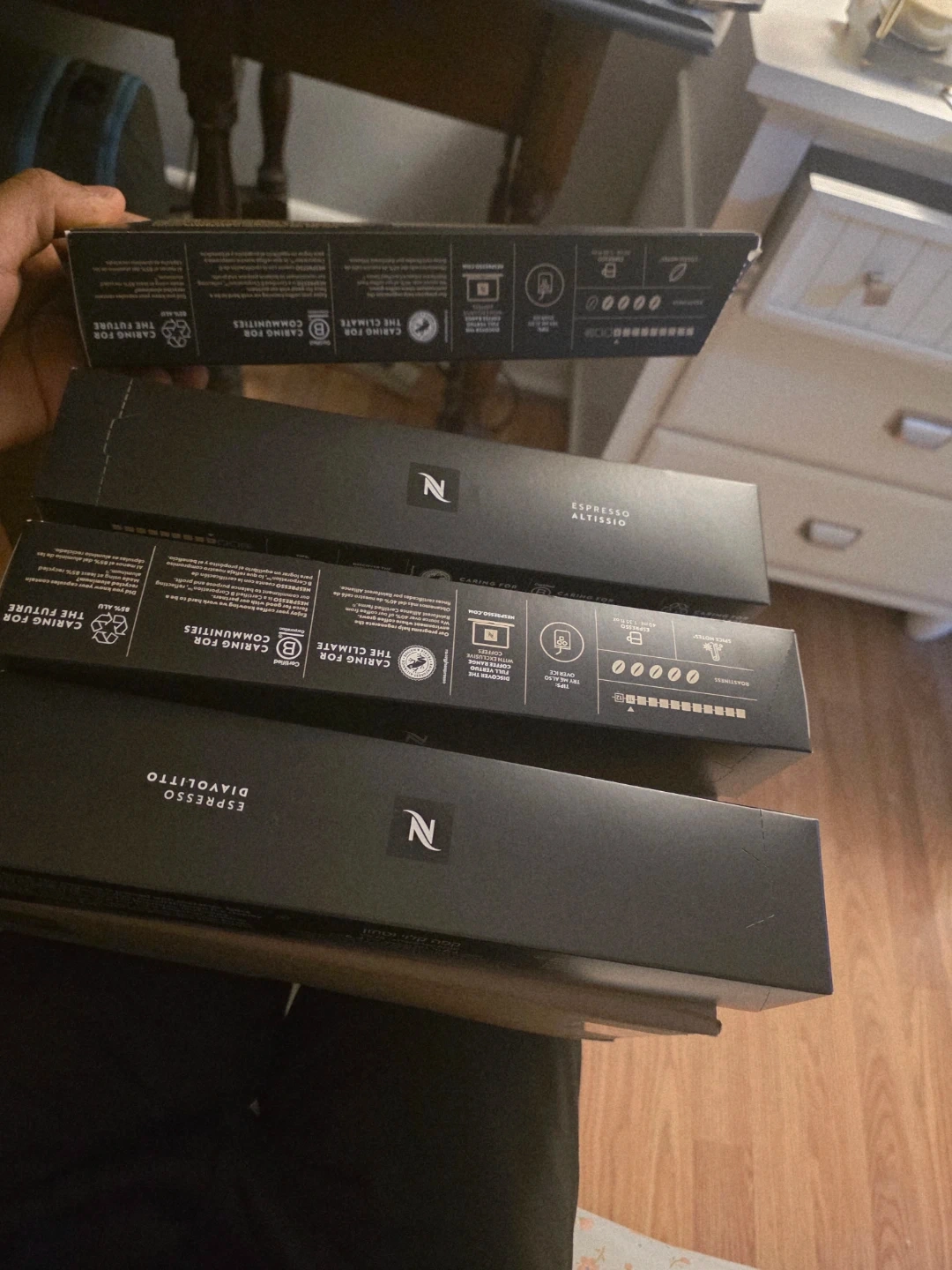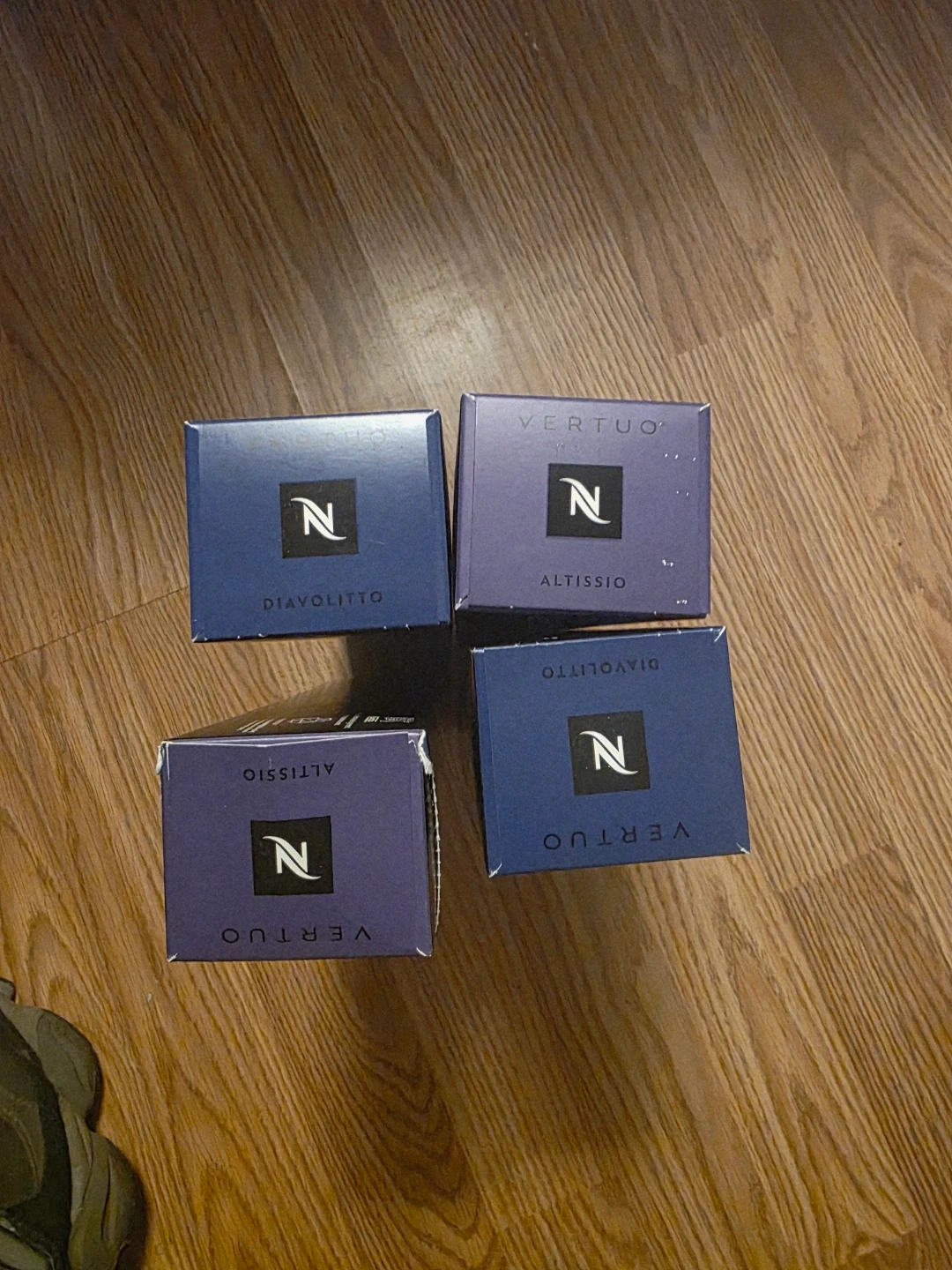 Two sleeves of Nespresso Vertuo coffee capsules. Includes one sleeve of Espresso Altissio and one sleeve of Espresso Diavolitto. Best before 2026.04.30.