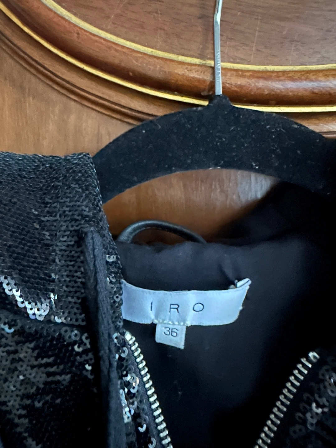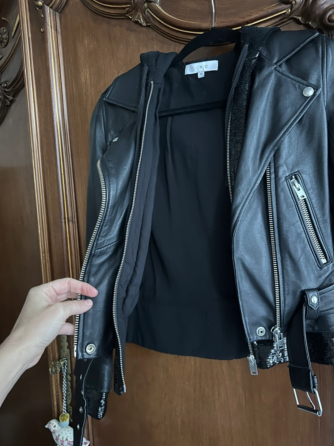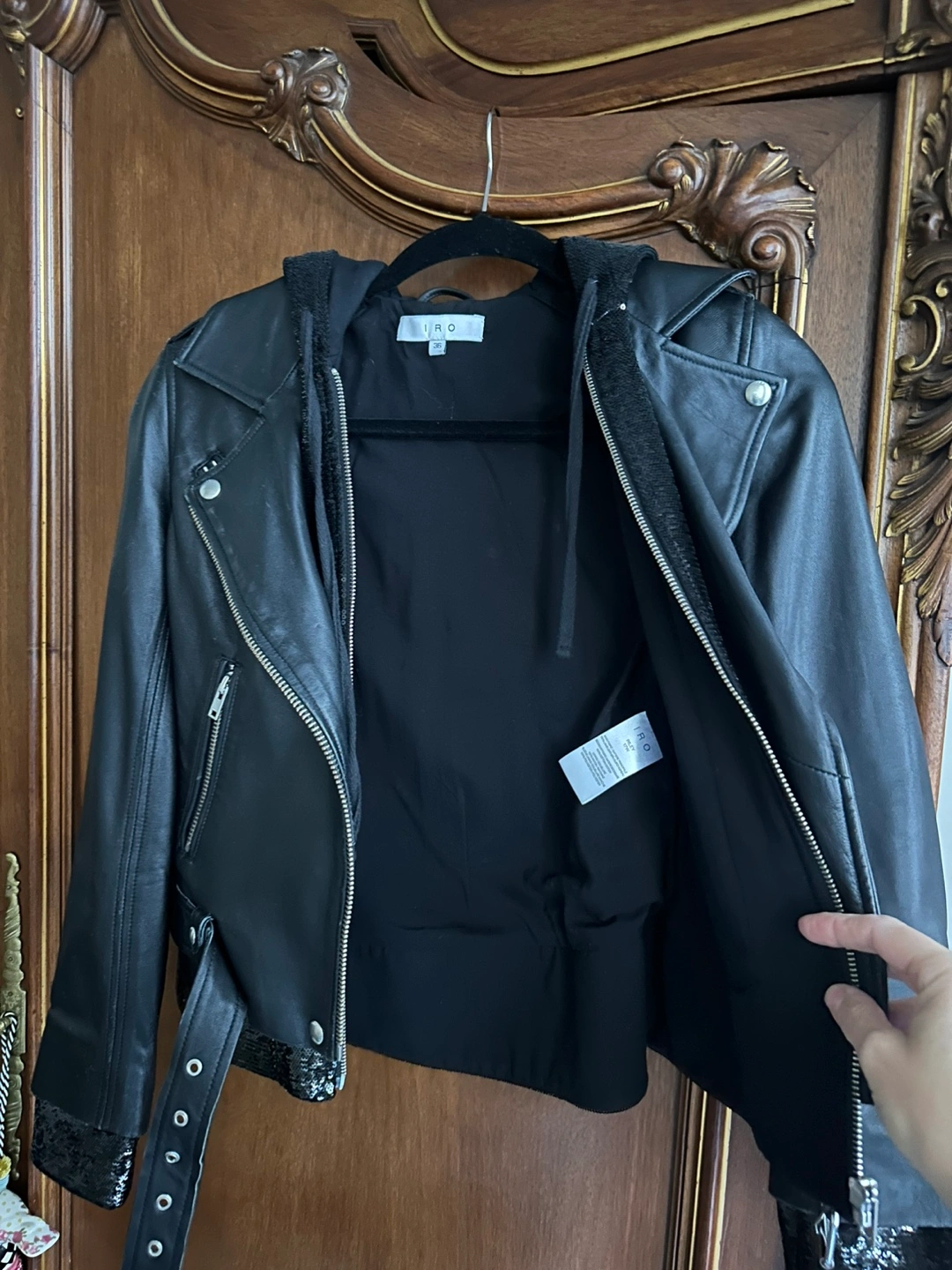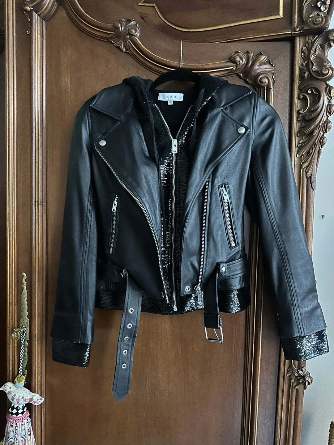 This IRO Riley Lamb Leather Motorcycle Jacket w/ Sequin Accents in Size 36 (IRO size guide says US Size 4).