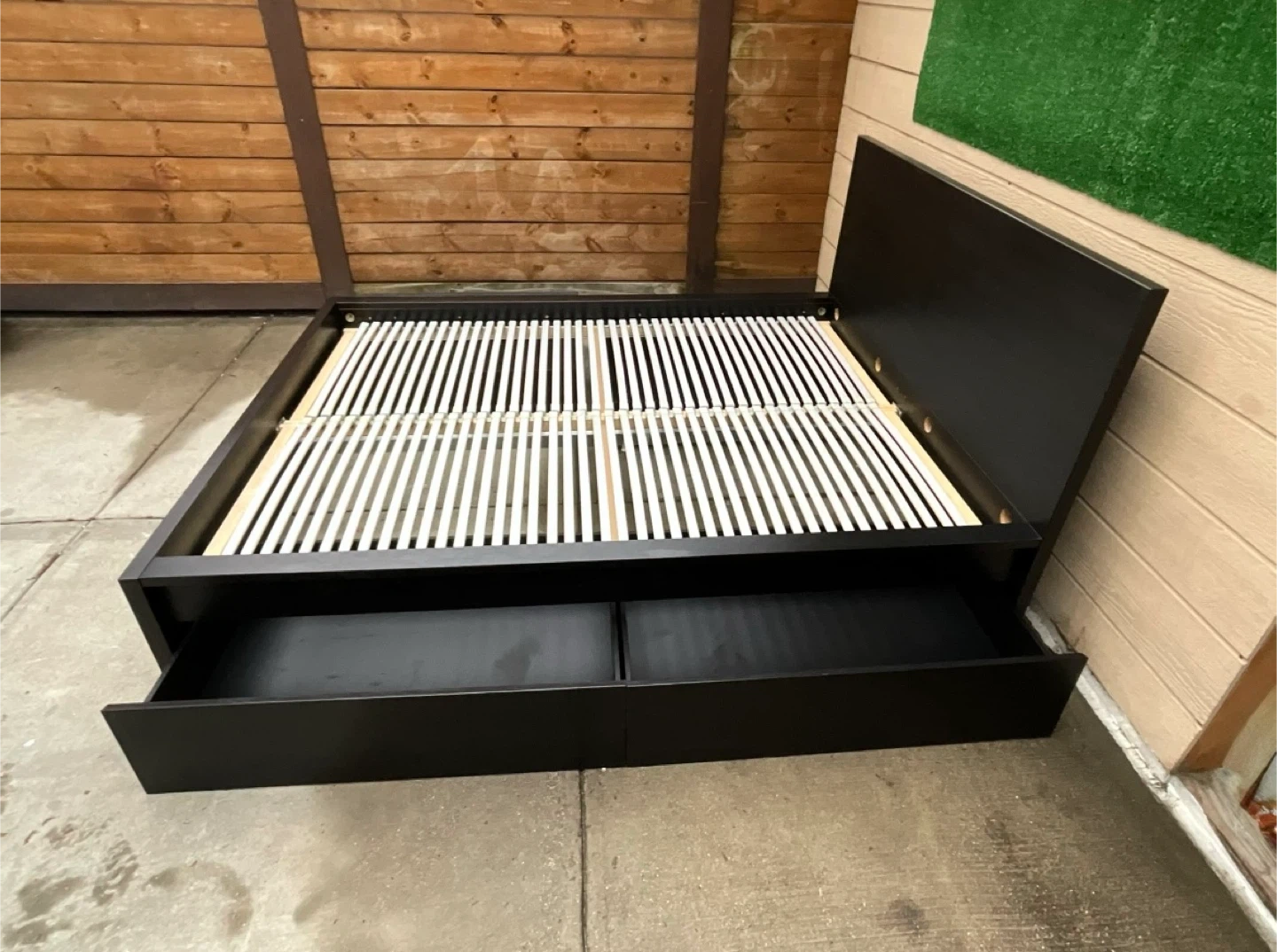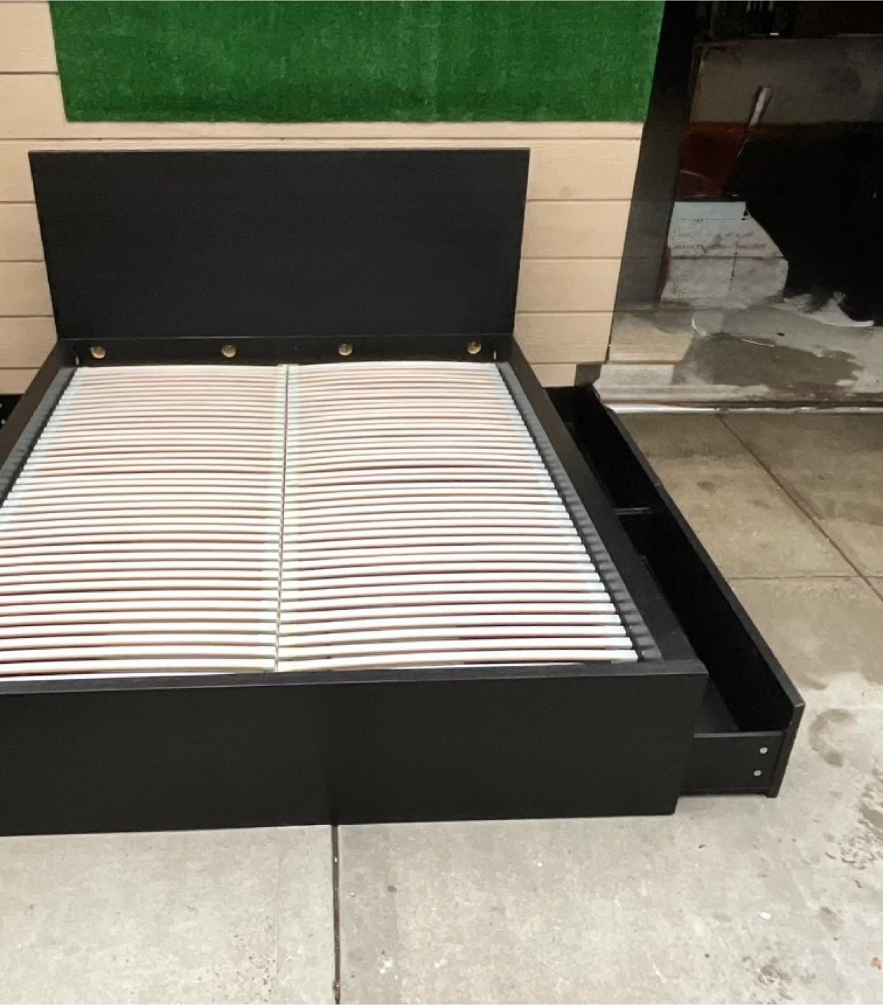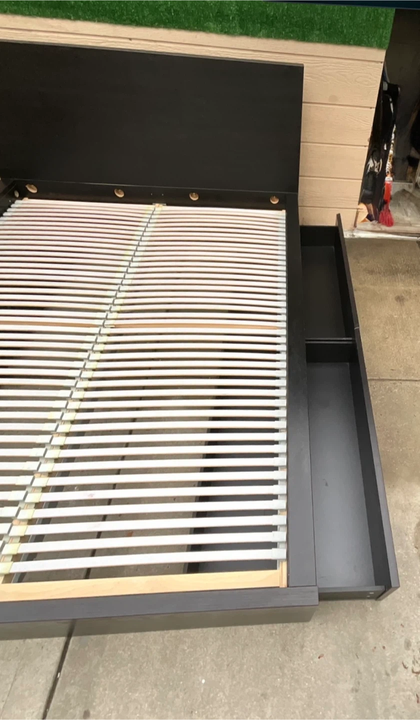 Queen Bed Frame w 2 Drawers. Cama con dos cajones.