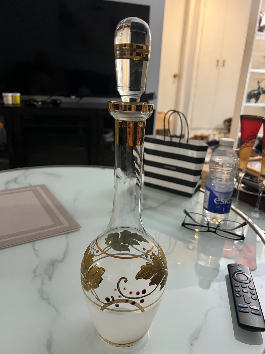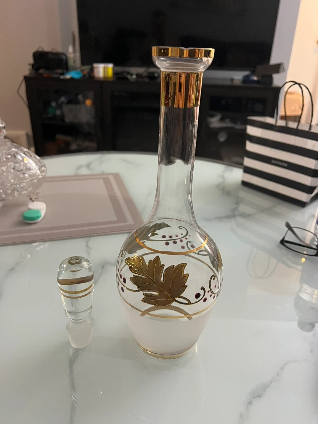 Decorative Glass Decanter with Gold Leaf Design