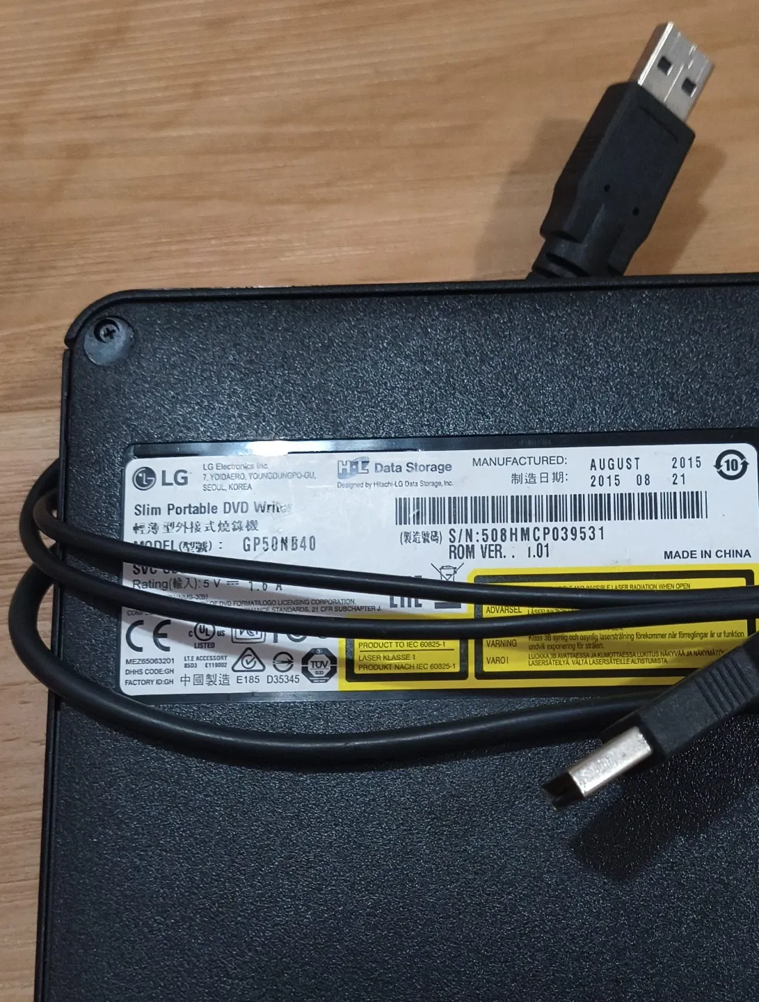 This is an LG Slim Portable DVD Writer. It's a USB 2.0 device. Manufactured in August 2015.