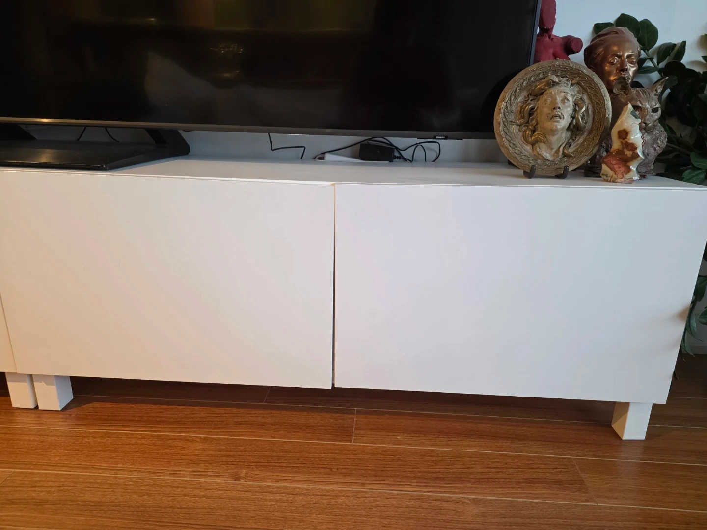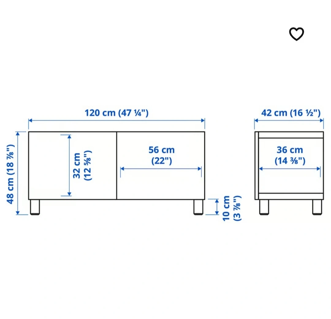 Selling a white IKEA BESTA TV unit. It's in great shape and ready for a new home! The dimensions are 120 cm (47 1/4") wide, 42 cm (16 1/2") deep, and 48 cm (18 7/8") high