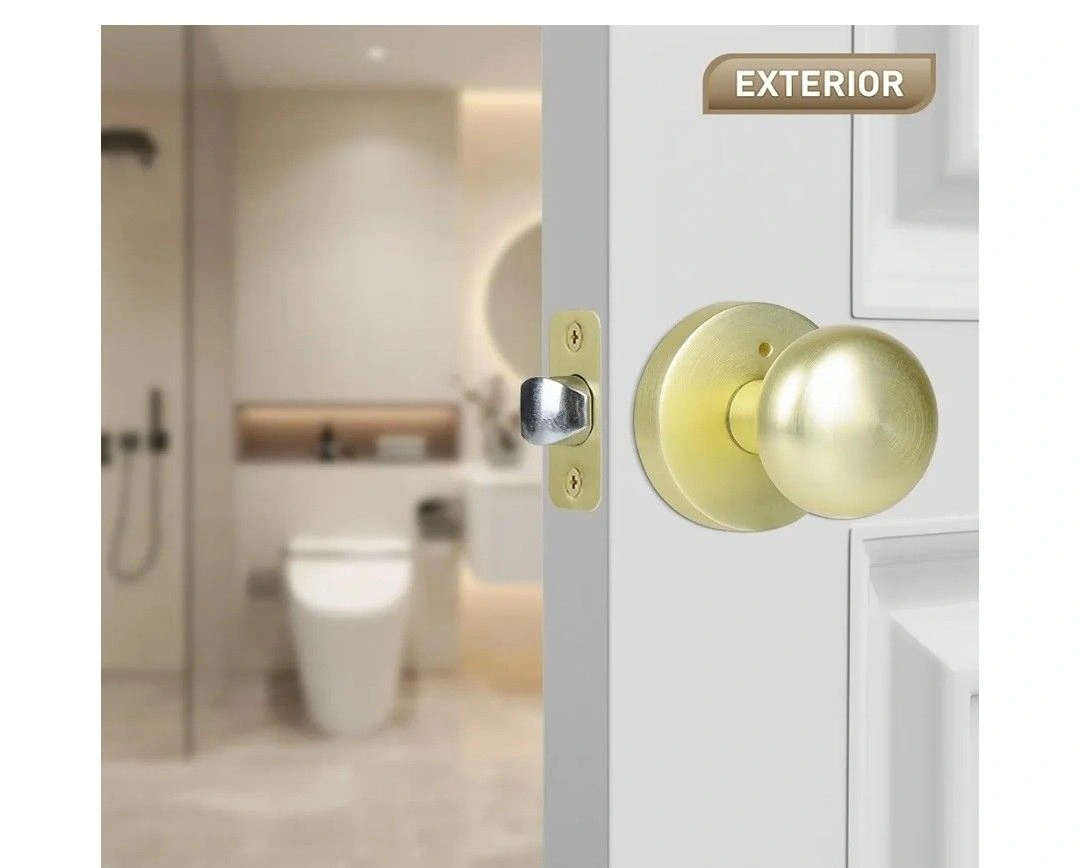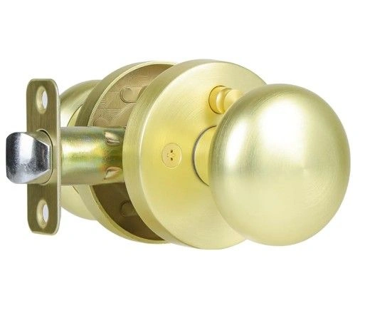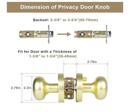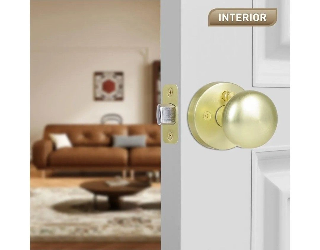 Satin Brass Privacy Door Knobs Interior with Push-Button