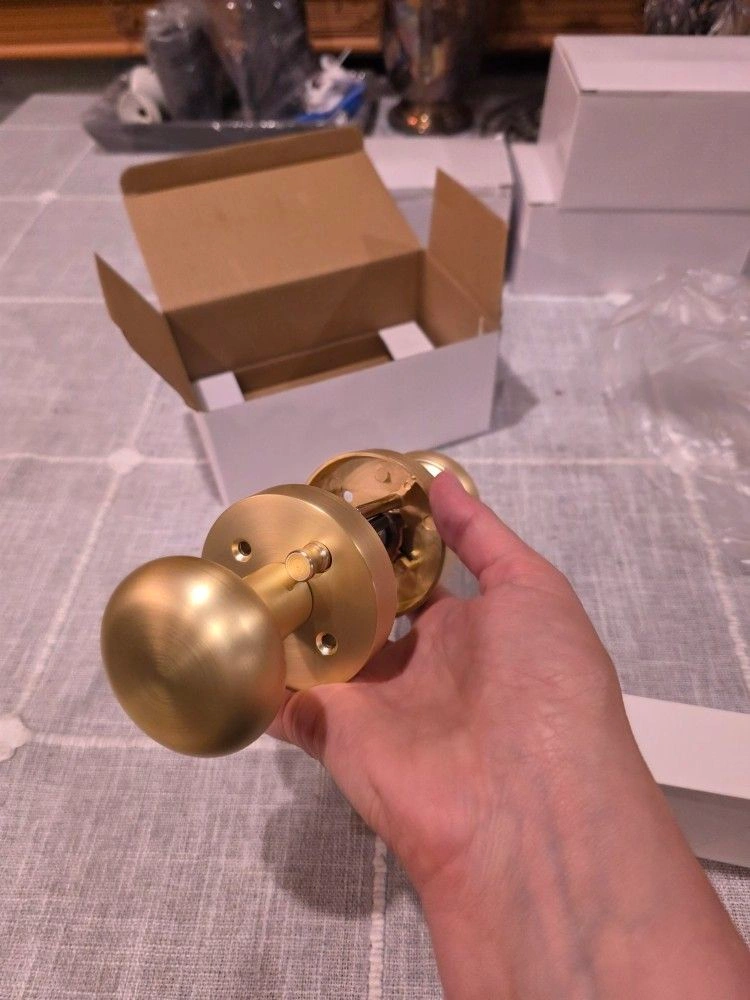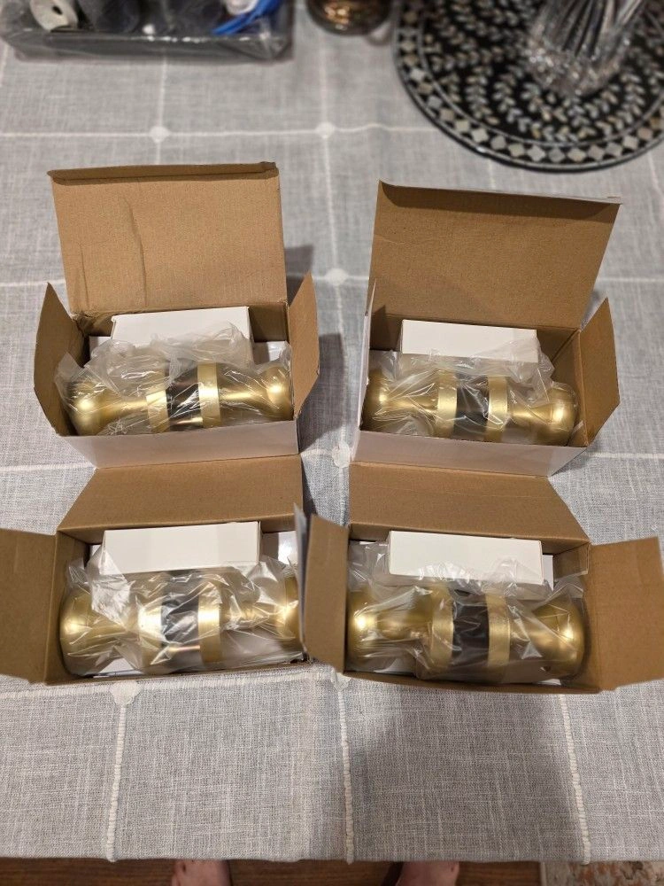 I have 4 sets of satin brass privacy door knobs with push-button lock. They are perfect for bathroom or bedroom doors. Each set $15 or all 4 for $45. Pick up in River Grove.