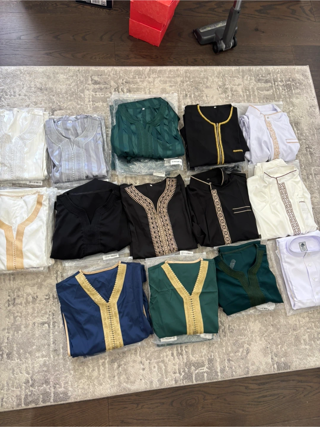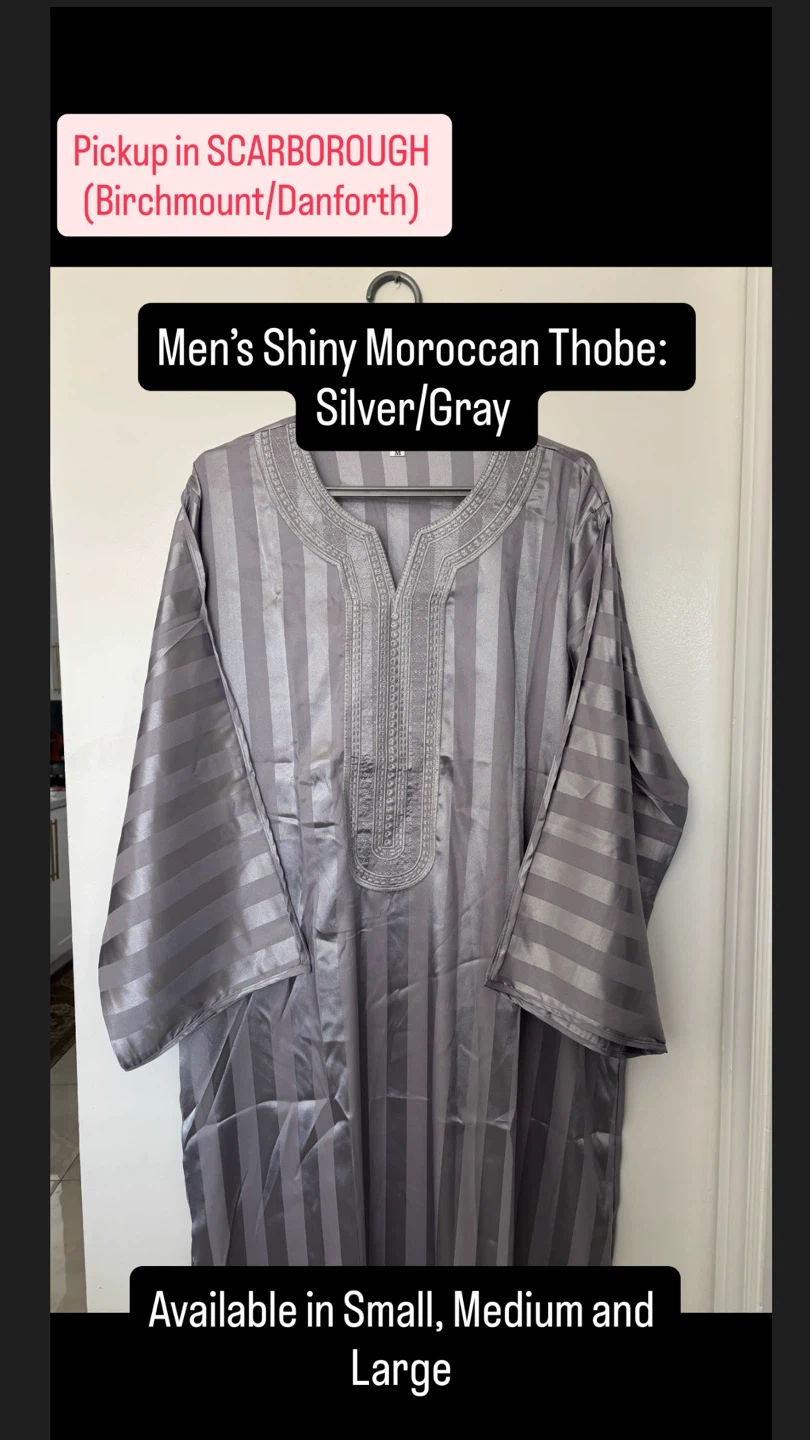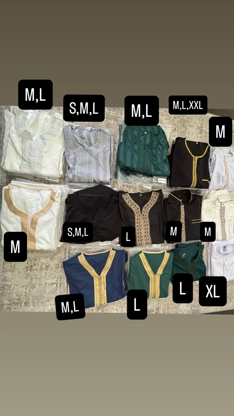 A variety of men's Moroccan thobes are available in different colours and sizes. These garments are made from synthetic materials and are suitable for everyday wear or special occasions. Many are available in sizes Small, Medium, and Large. Ramadan Eid