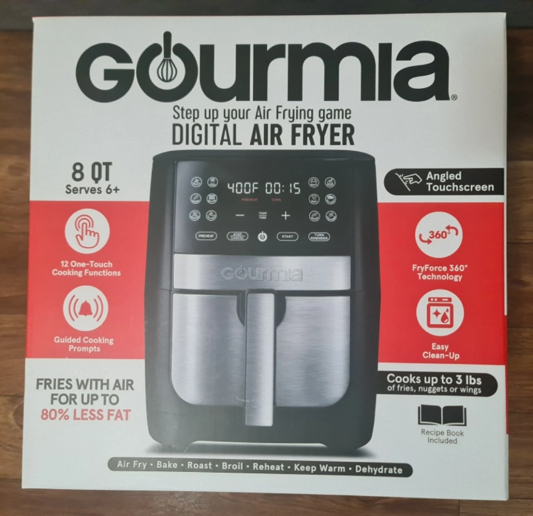 8 quart capacity,NEW and never used . Touch screen and 12 cooking functions including dehydration function.