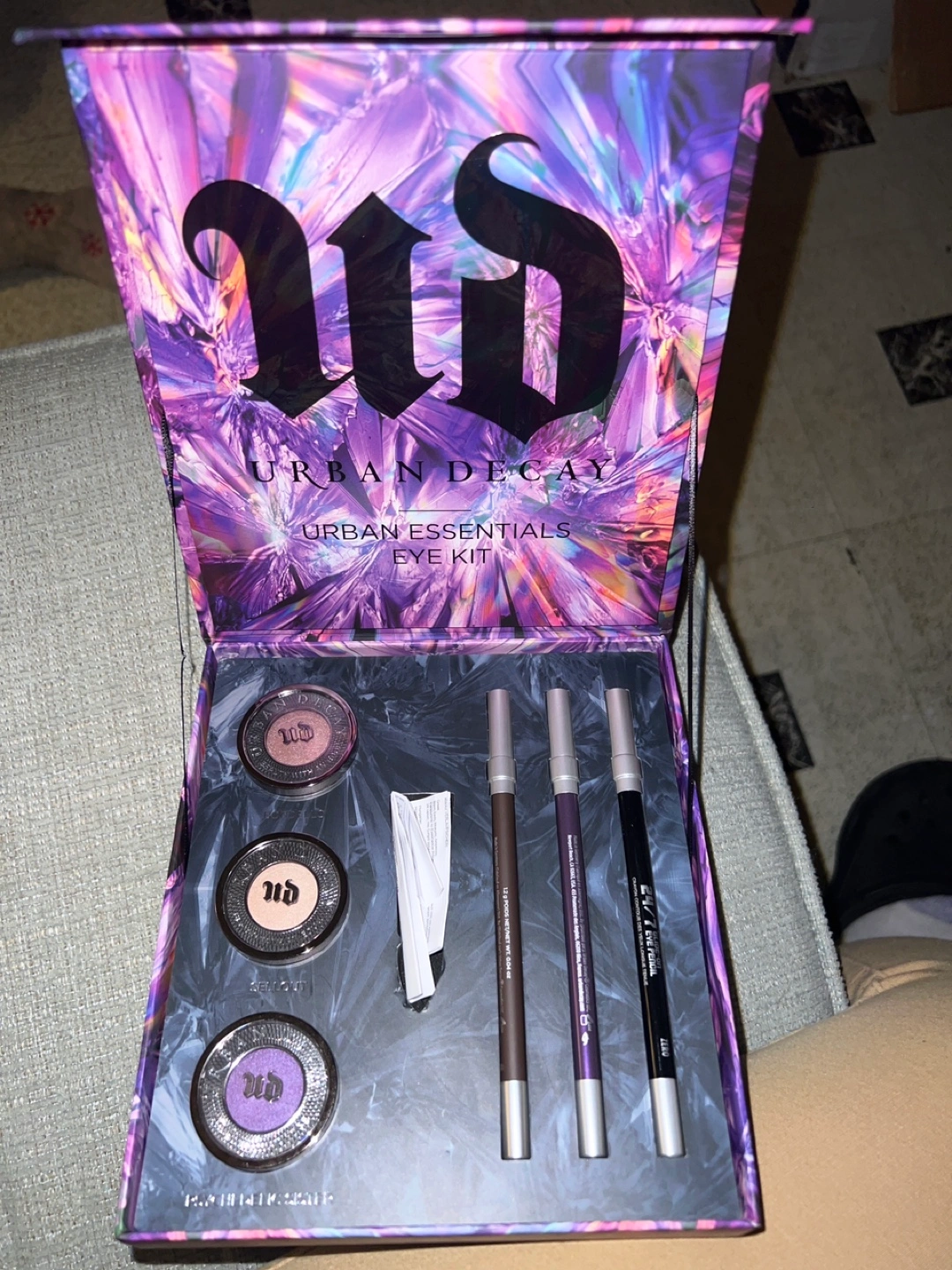 New Urban Decay eyeshadow kit. Includes three eyeshadows, three eyeliners, ( ⭕️sponge applicator is missing) Shades include Bordello, Sellout, and Psychedelic Sister. Perfect for everyday or special occasion use.