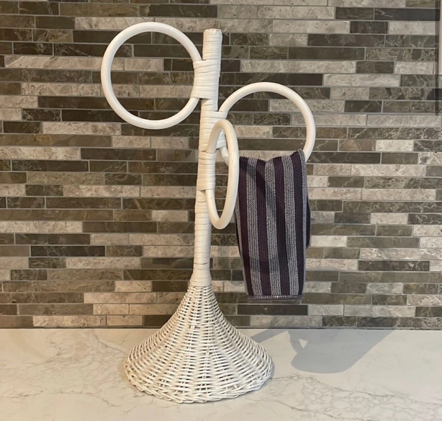 Vintage White Wicker Towel Holder