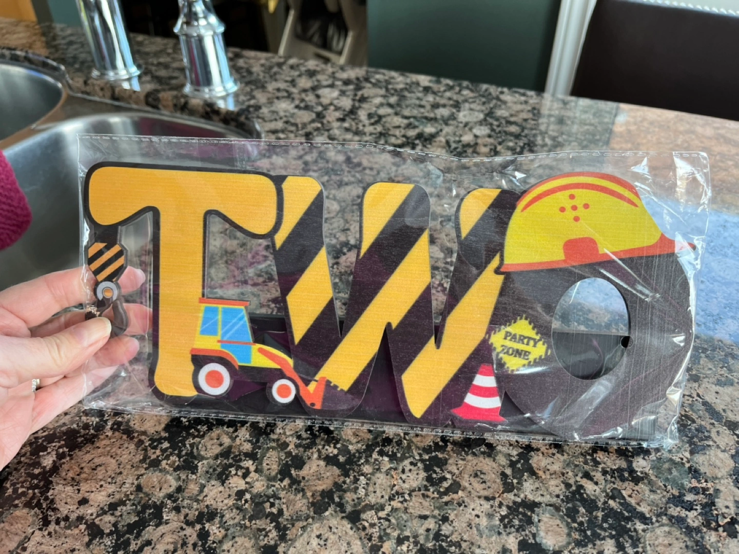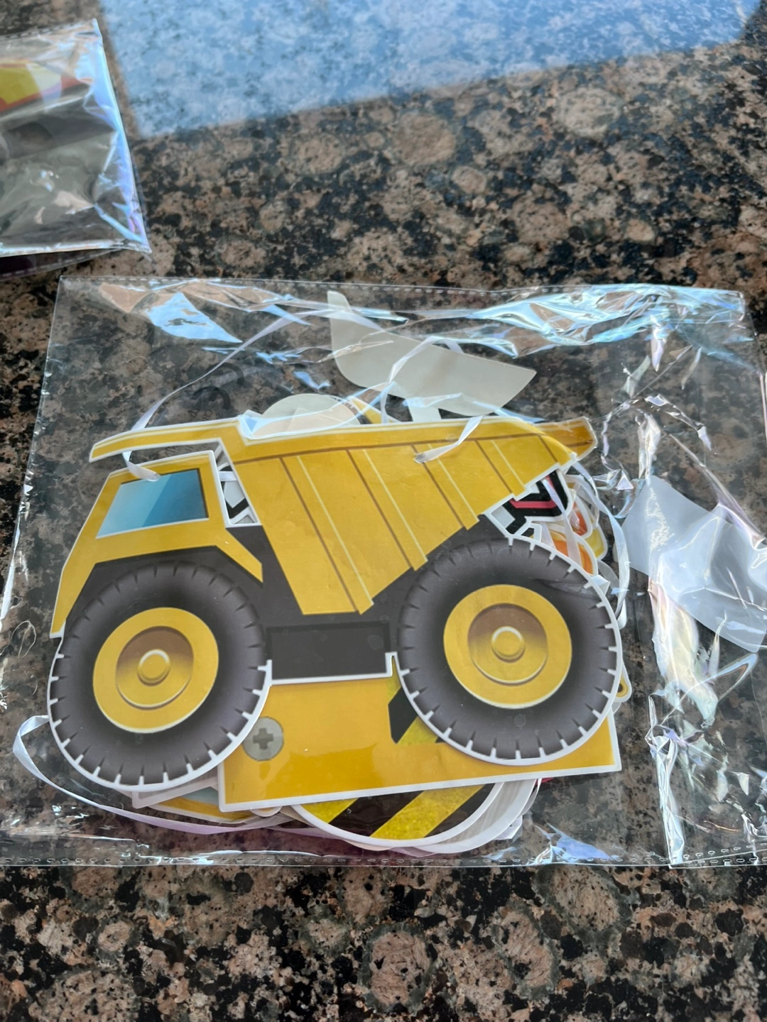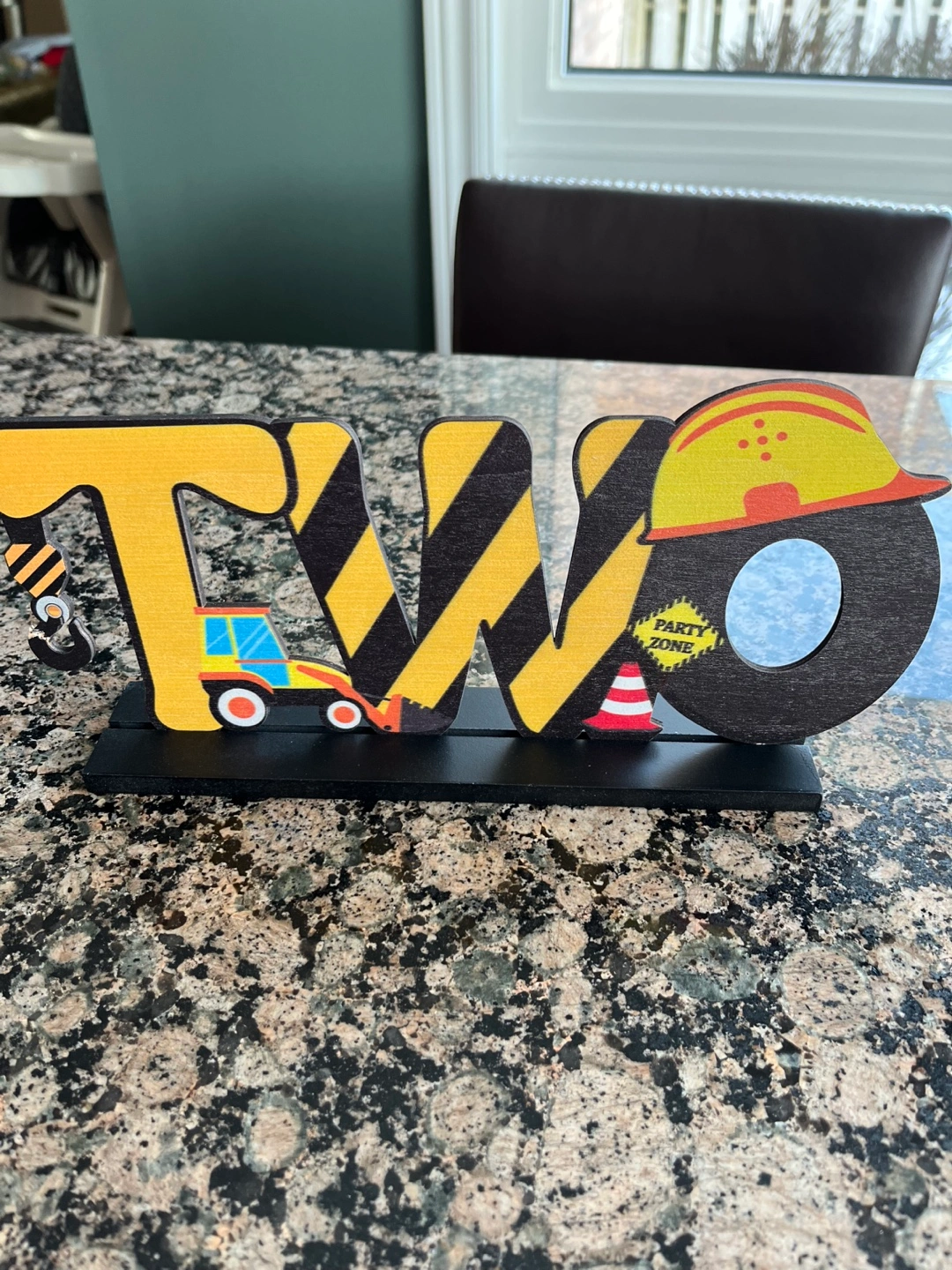 Adorable construction-themed party decorations. Includes a 'Two' centerpiece and a banner featuring various construction vehicles. Perfect for a second birthday party. Was used once