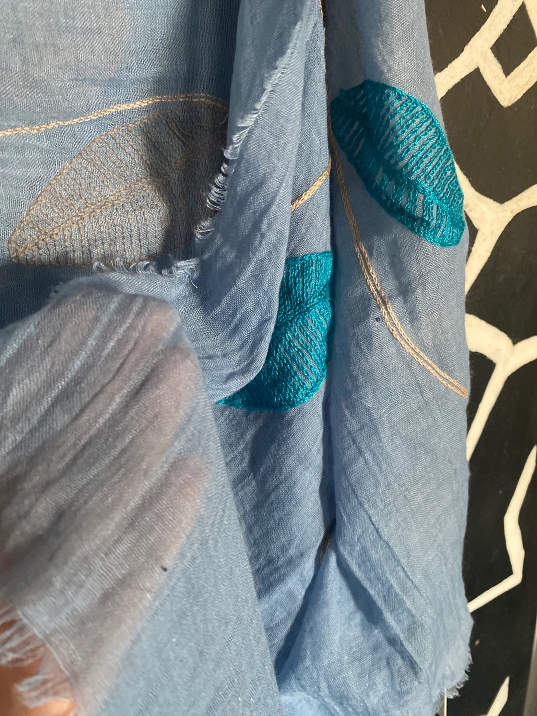 Buy & SellDusty Blue Embroidered ScarfDusty Blue Embroidered Scarf$10Dusty blue lightweight scarf, Aqua and grey embroidered leaf design. Soft material. Raw edges. 30” x 70”ConditionLike newWHERE TO MEETCheck LocationView MapSELLERElleWallance Emerson686 reviews0 chats·0 favorites·4 viewsSEND CHAT TO SELLERHi Elle! I’m interested in your listing.Hi Elle! I’m interested in your listing.Get the Karrot app to chatSign In to chat
