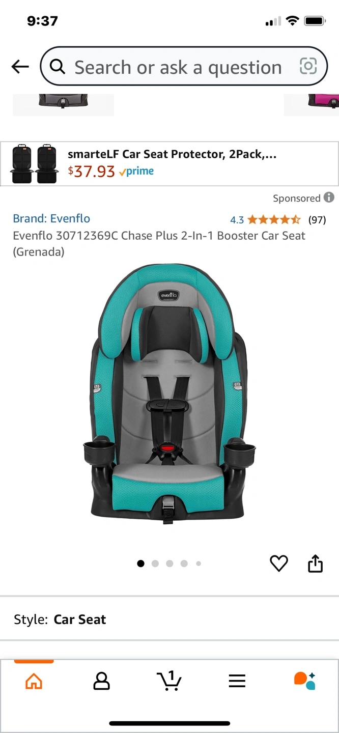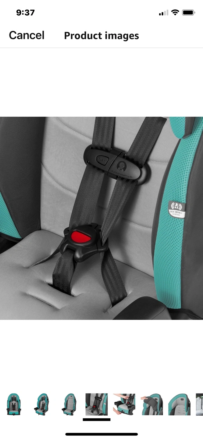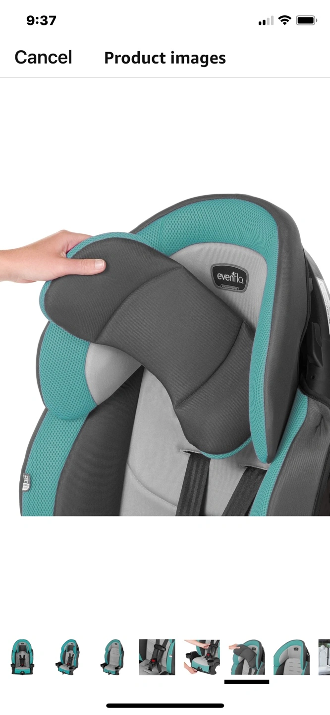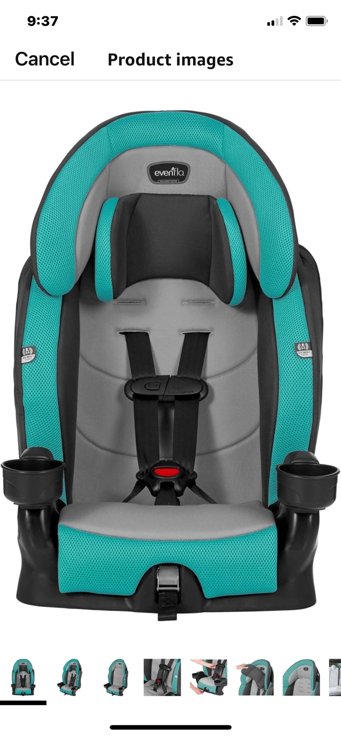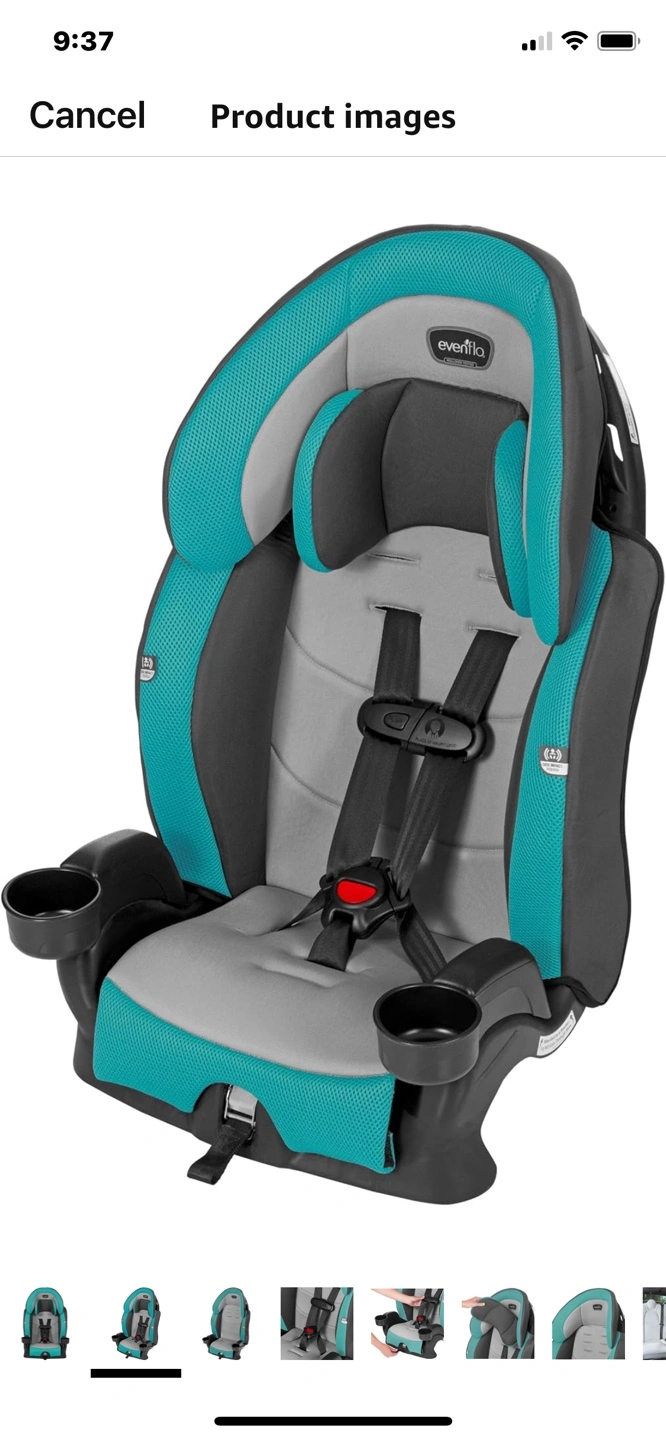 Evenflo Chase Plus 2-in-1 booster car seat. Teal and grey. Cup holders. Adjustable headrest. New brand