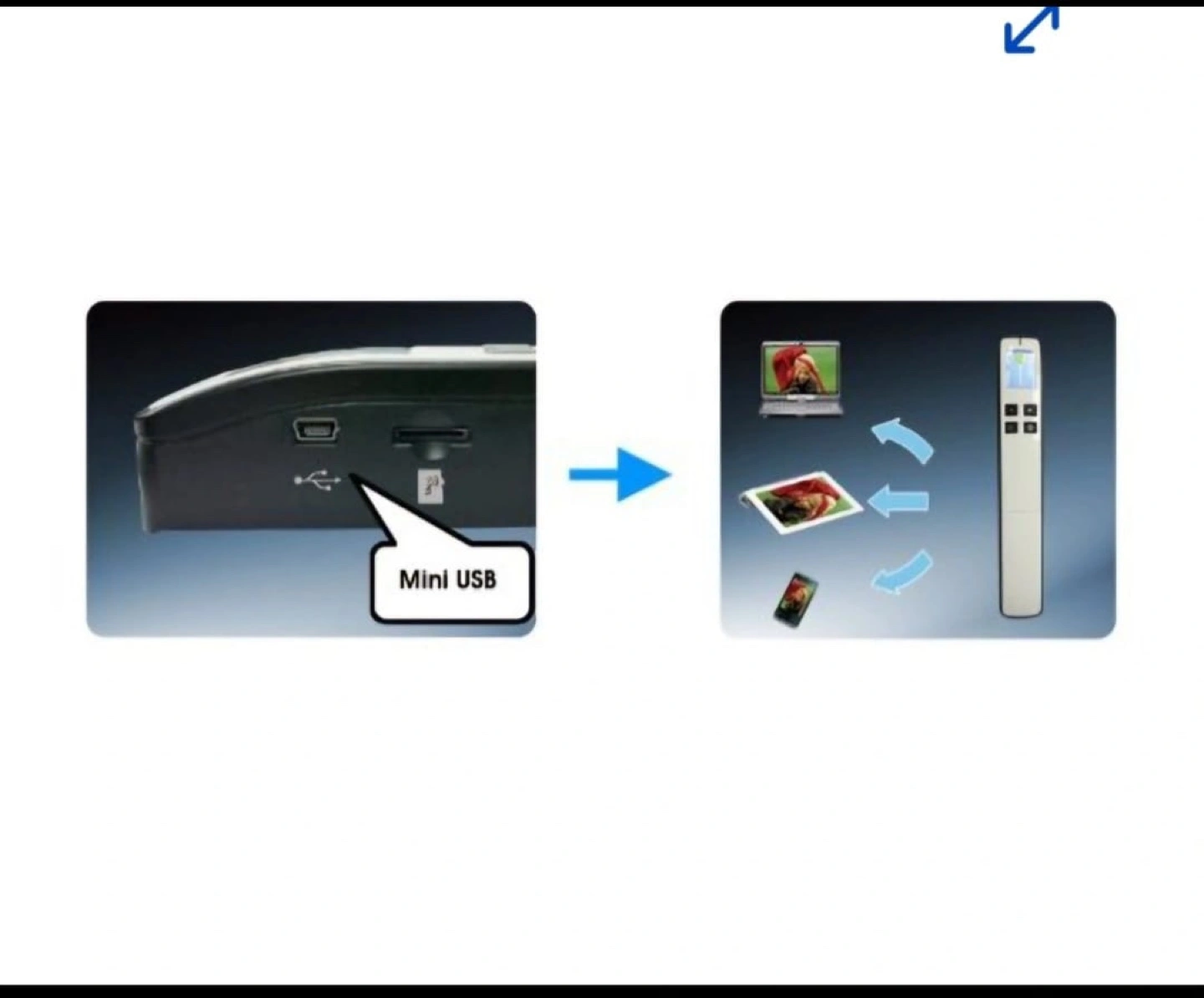 Experience the efficiency and convenience of a truly mobile scanner Powered only by 2x AA alkaline batteries, the MiWand 2 is a mobile scanner that allows you to scan without a computer or software. Simply gliding the scanner over the surface of a page and the scan is done. The images are then saved to a micro SD card up to 32G (optional).