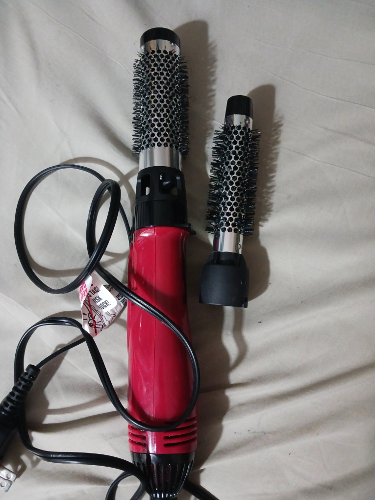 Revlon hot air brush. Two brush attachments. 1200 watts. Ionic technology. Gently used. Has 3 settings . High low and cool