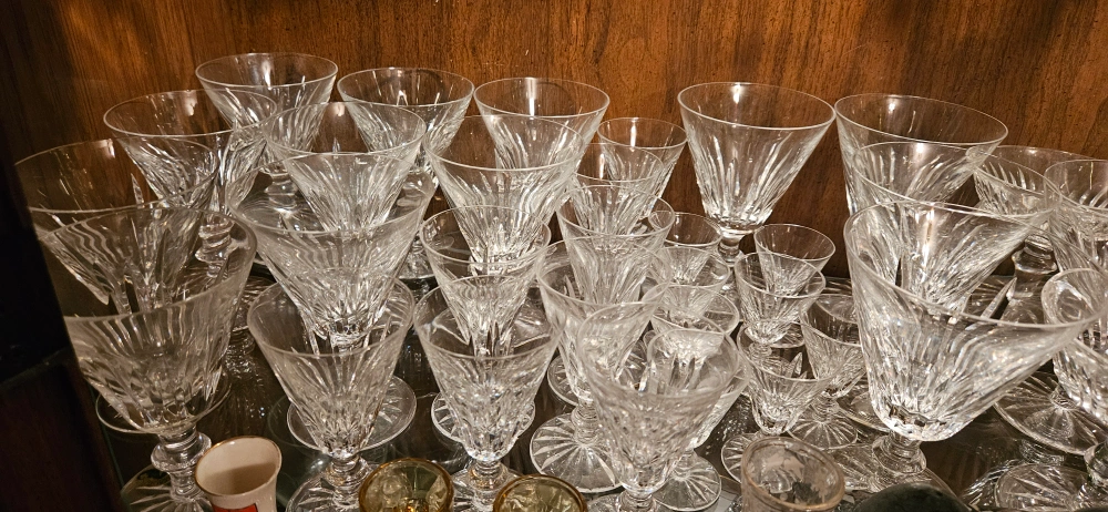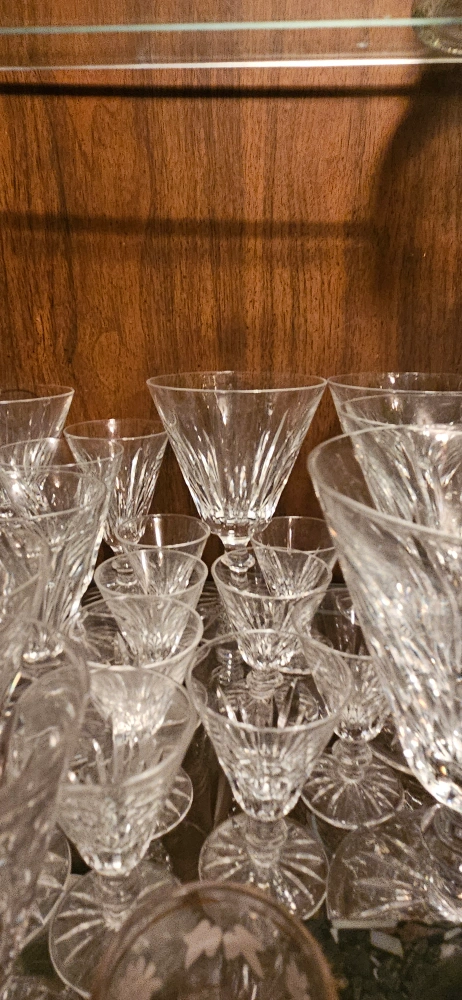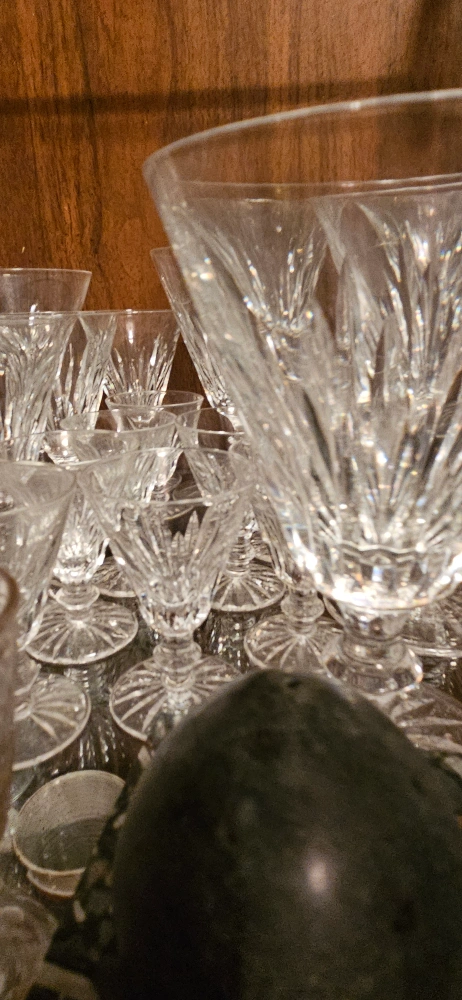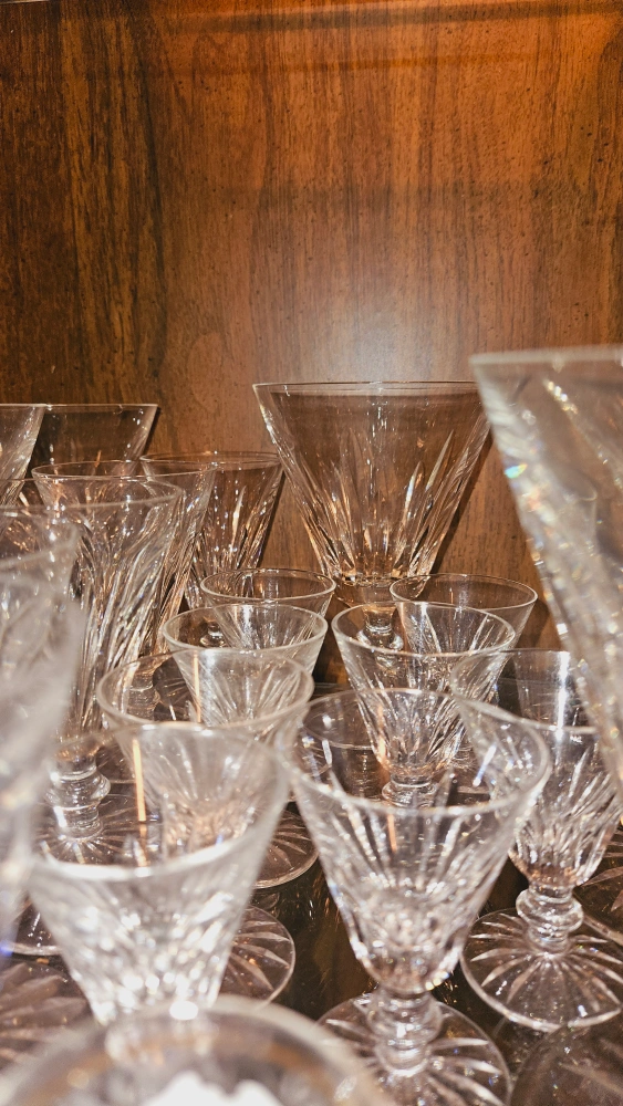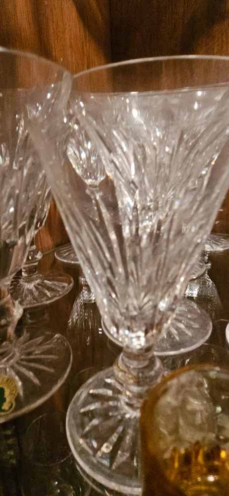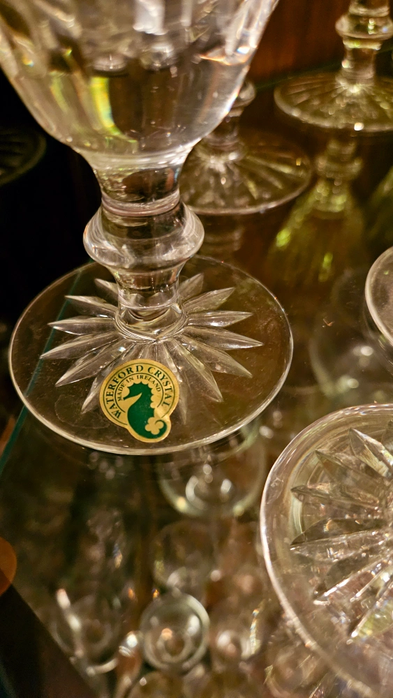 A lovely set of Waterford crystal glasses, including goblets, wine glasses, sherry glasses, shot glasses, & dessert glasses, features an elegant design & is perfect for entertaining! ✨🥂 Minor wear may be present. Made in Ireland. #WaterfordCrystal #Glasses #Entertaining #Ireland #Collectibles