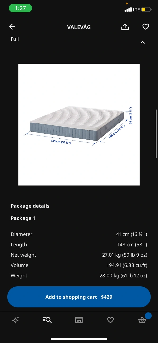 IKEA VALEVÄG Full Mattress - Medium Firm