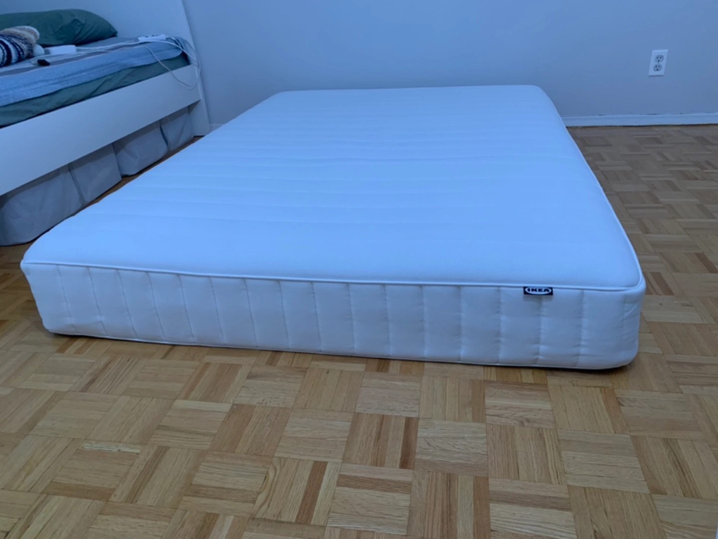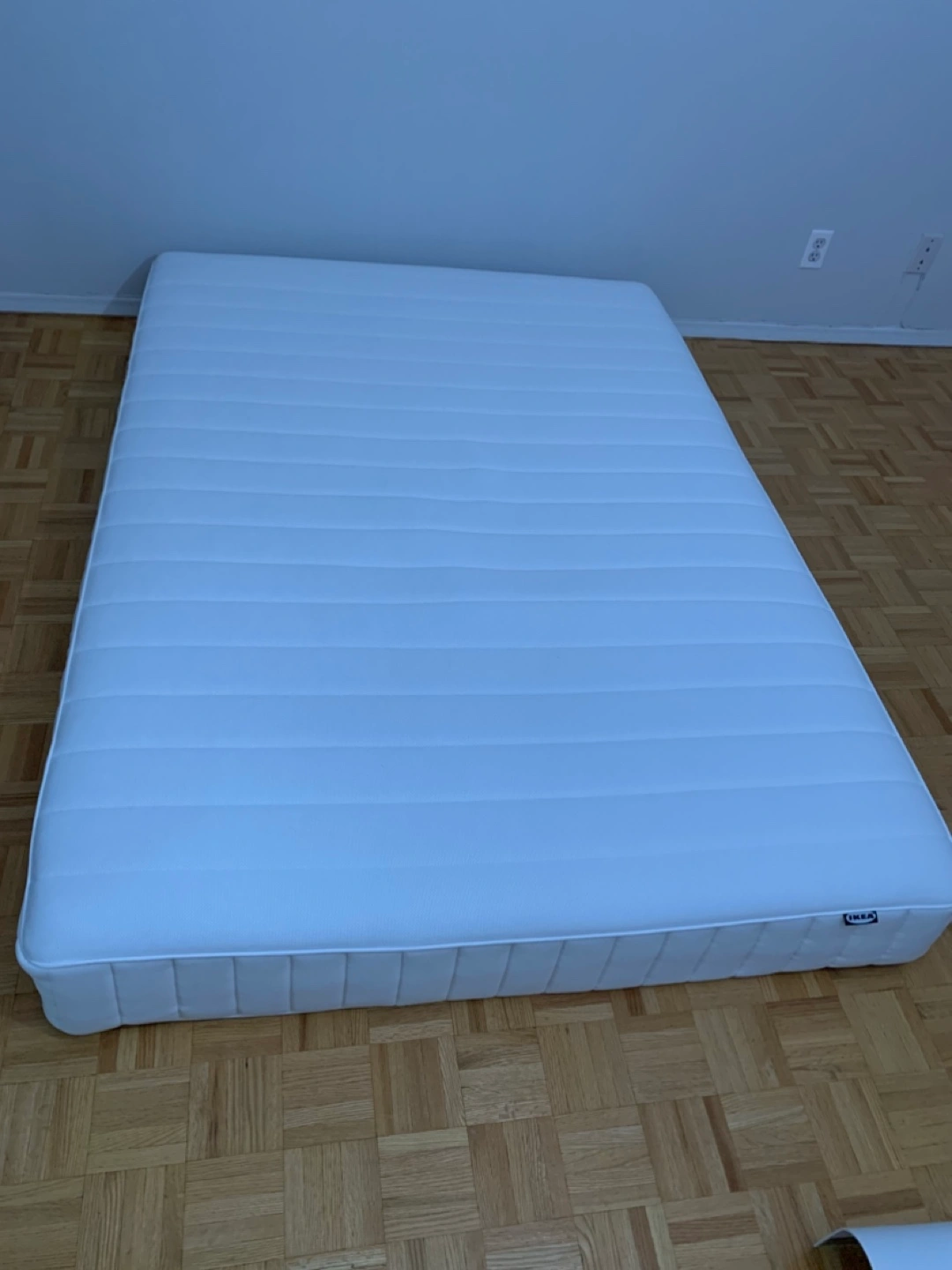 Full-size mattress, medium-firm feel. White. Good condition. IKEA brand.