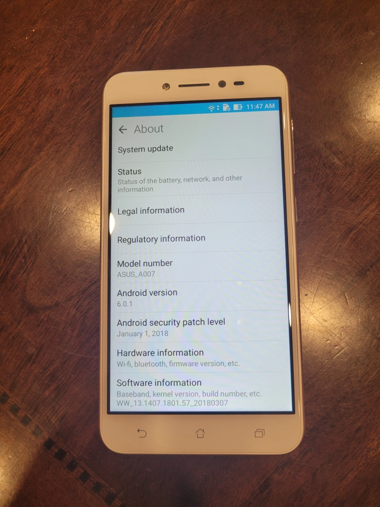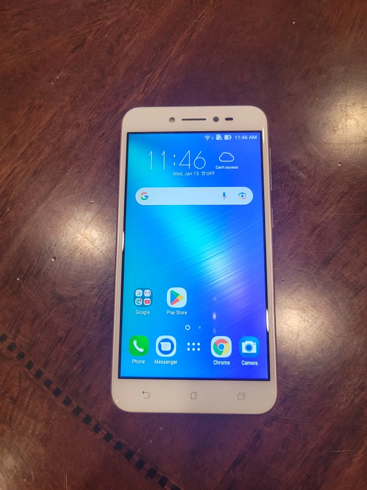 Pre-owned ASUS ZenFone A007 Android smartphone. Rose gold colour. 10 GB of internal storage, about 2.5GB used for required operational service.