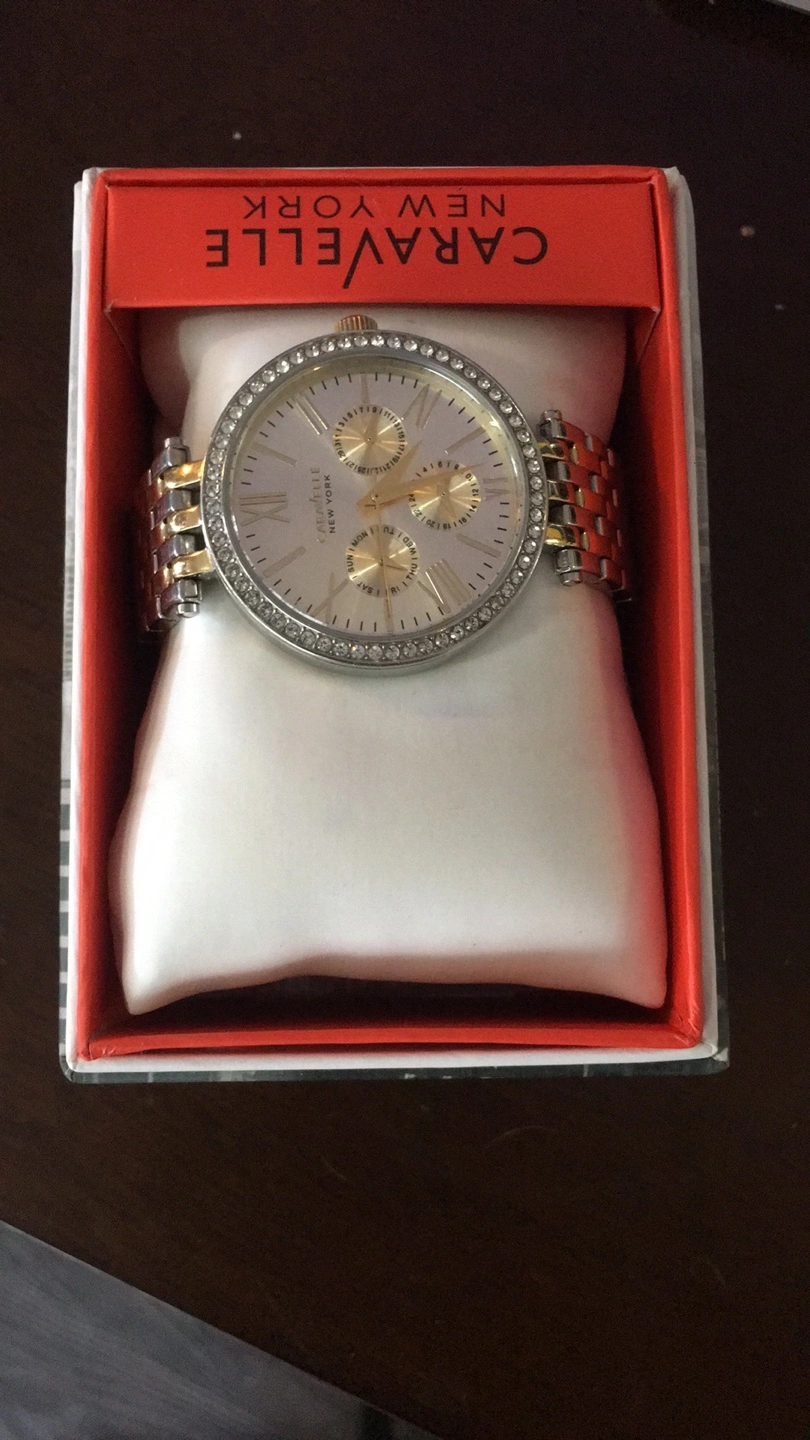 Two-tone gold and silver toned bracelet watch. Crystal accents. Round Chronographic face. Sorry no refunds. Cash or e-transfer only. Payment to be made at pickup.