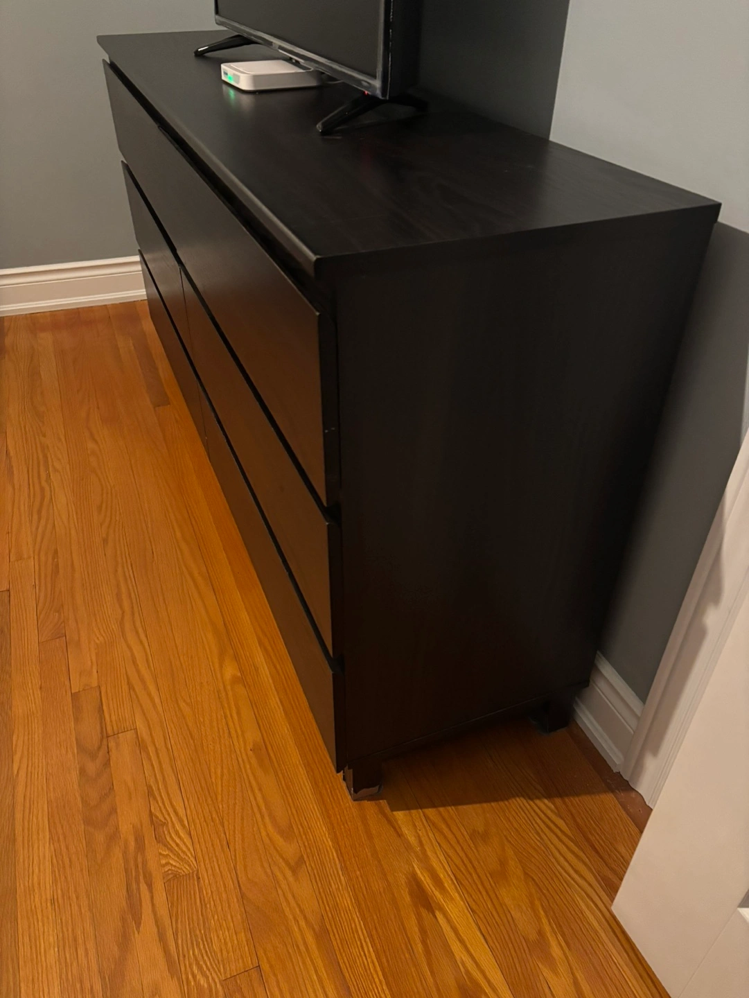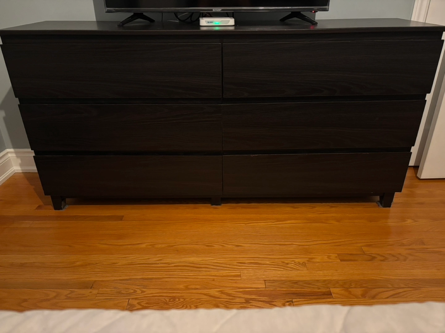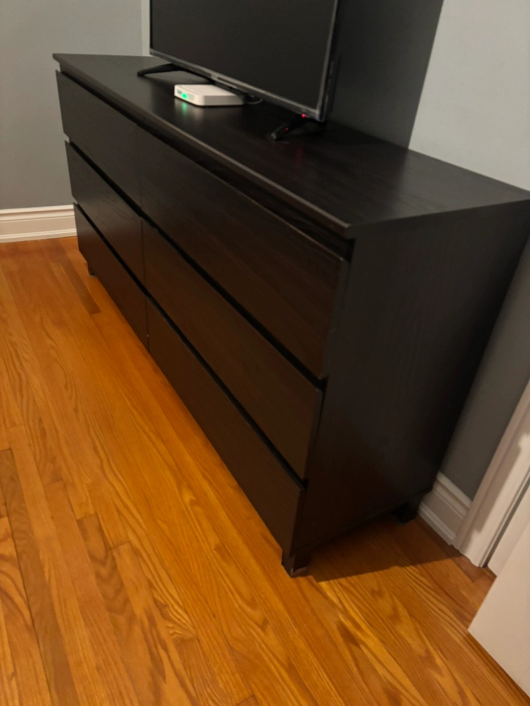 IKEA Six-drawer dresser. Dark brown finish. Good condition. Some minor wear.
