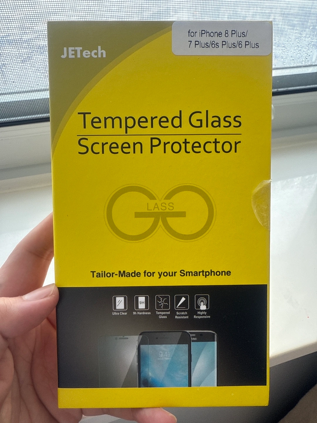 New tempered glass screen protector. Compatible with iPhone 6, 6 Plus, 6s Plus, 7 Plus, and 8 Plus. Ultra clear, 9H hardness, scratch resistant, highly responsive.