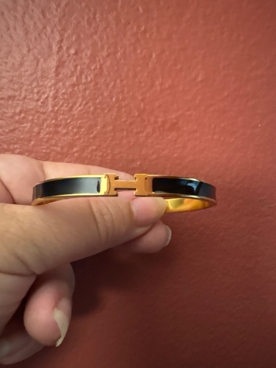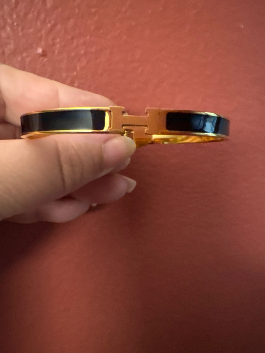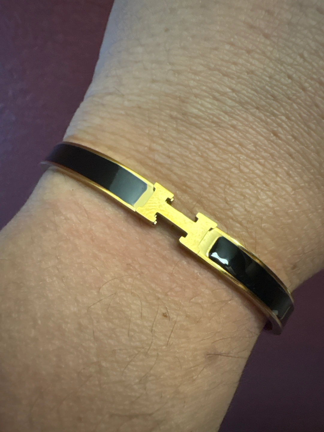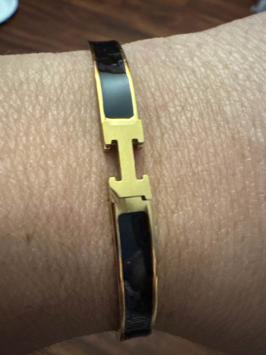 18 K Gold-plated Stainless Steel H design bracelet. Black enamel. H clasp. New