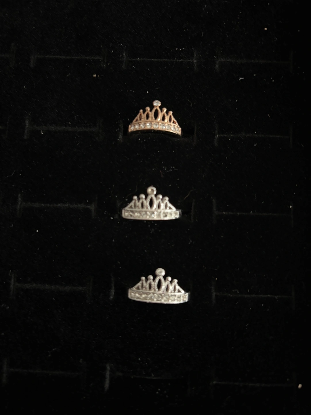 all crown rings size 4-6 - gold is the smallest one and the silvers are size 5-6 and they are - $10 each