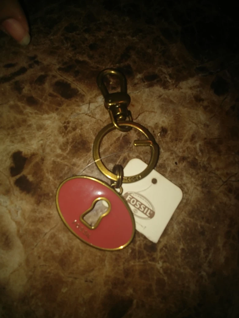 Brand new Fossil keychain. Features a coral coloured oval charm with a keyhole design. Gold-toned metal. Comes with original tag. Price is firm. pick up Midland and Danforth or young bloor or 401 bay street or stc mall