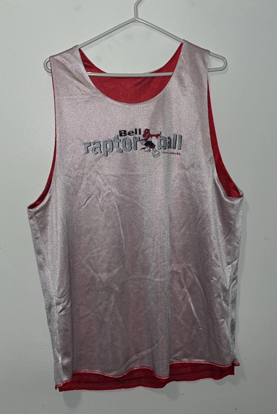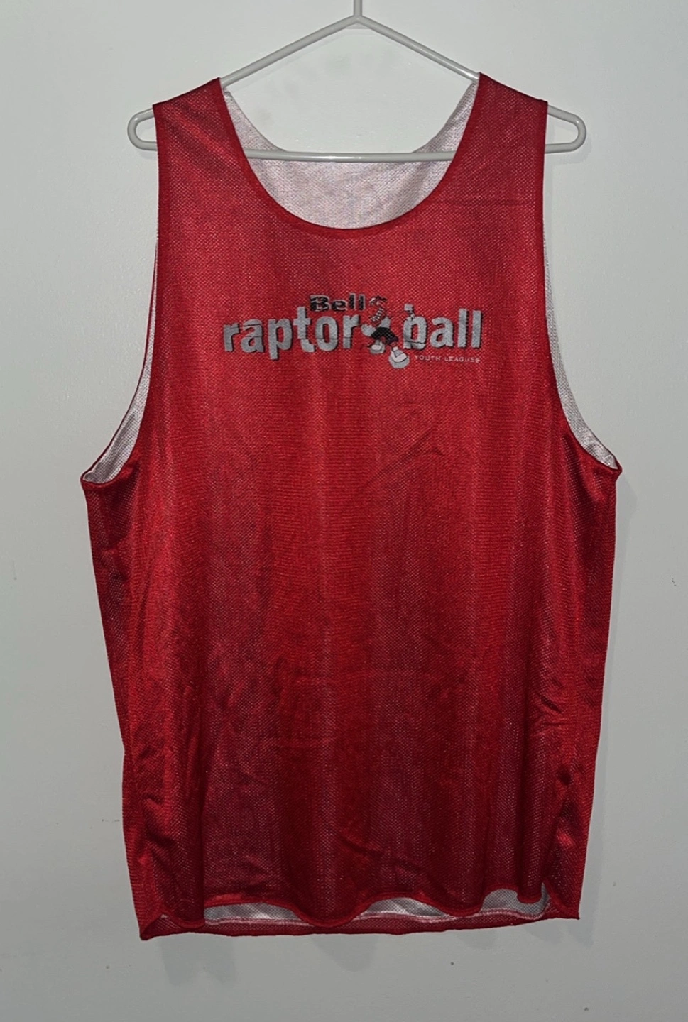 Toronto Raptors Youth League Bell Raptor Ball reversible jersey. Red & white reversed. It was used in a the 90s early 2000s with a youth program through the Toronto Raptors in the city. Cool little piece of Toronto Raptors & Toronto history. The raptors grew the sport of basketball in the city & the country.