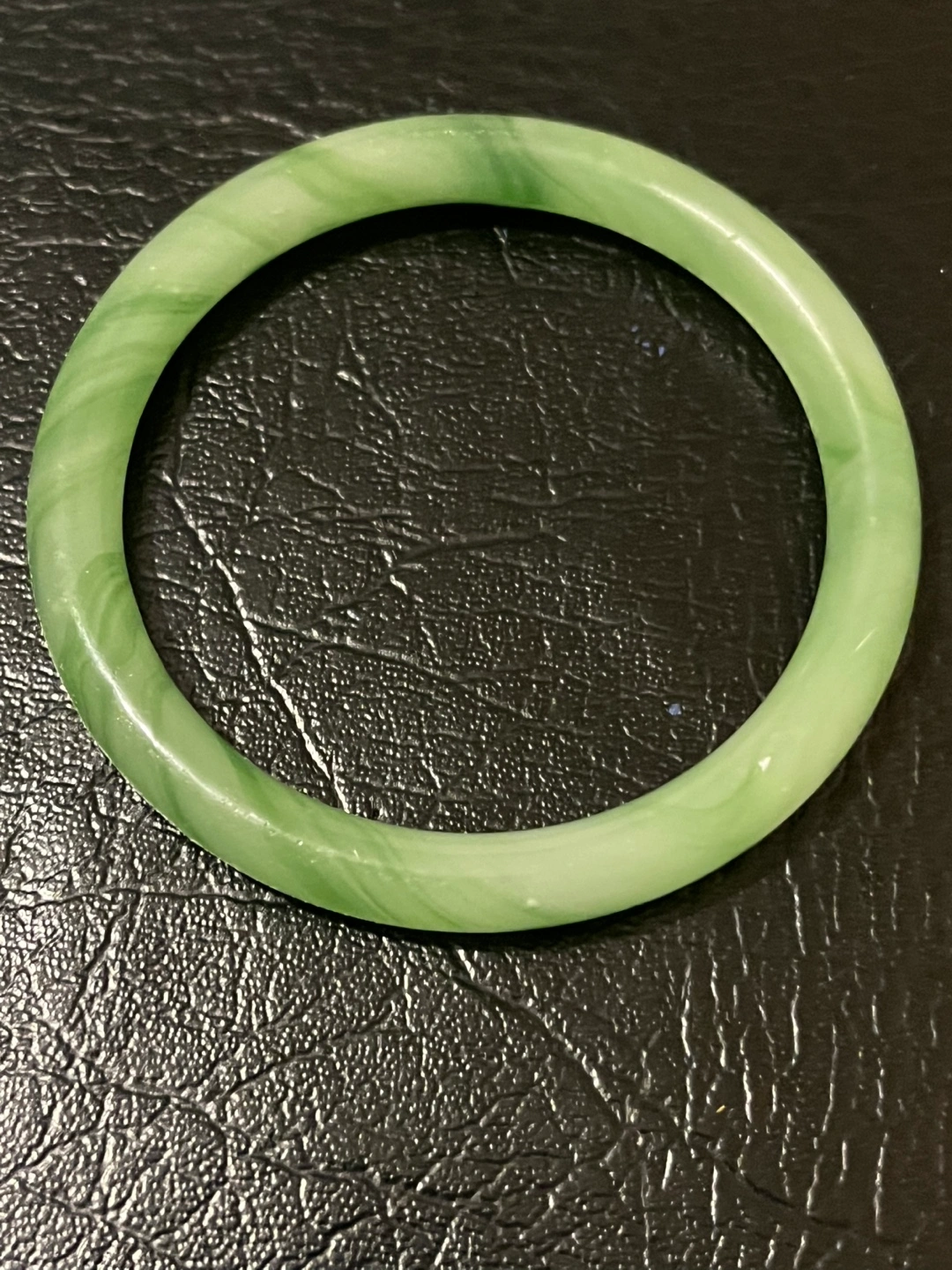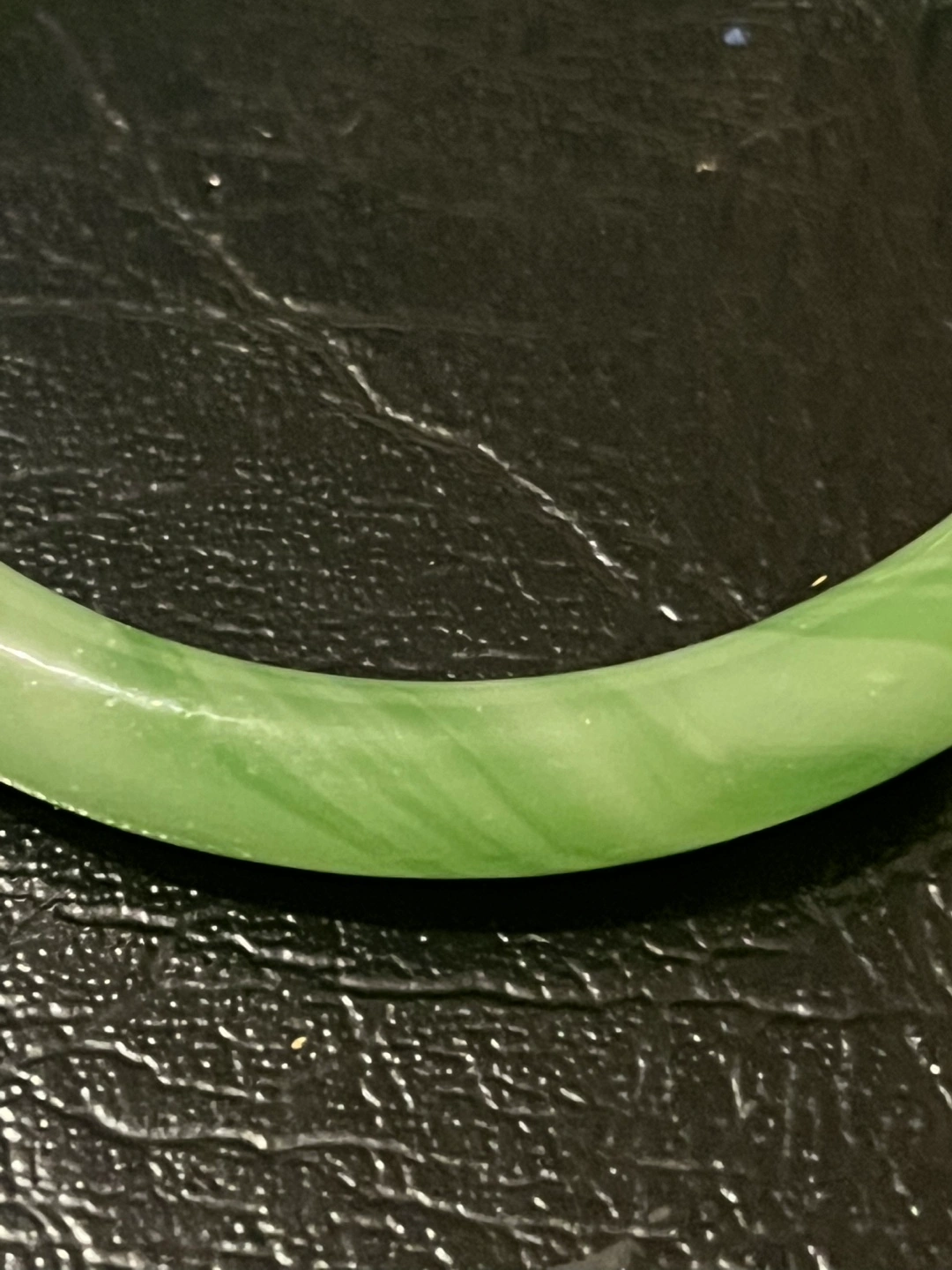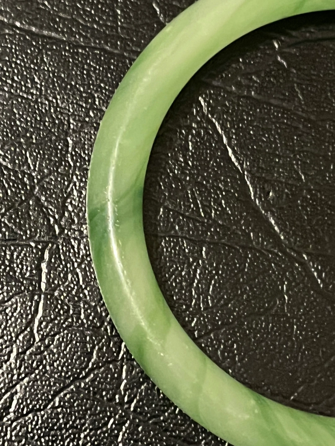 Beautiful green jade bangle bracelet. Simple design. Unique swirling pattern. 100% authentic Jade medium size.