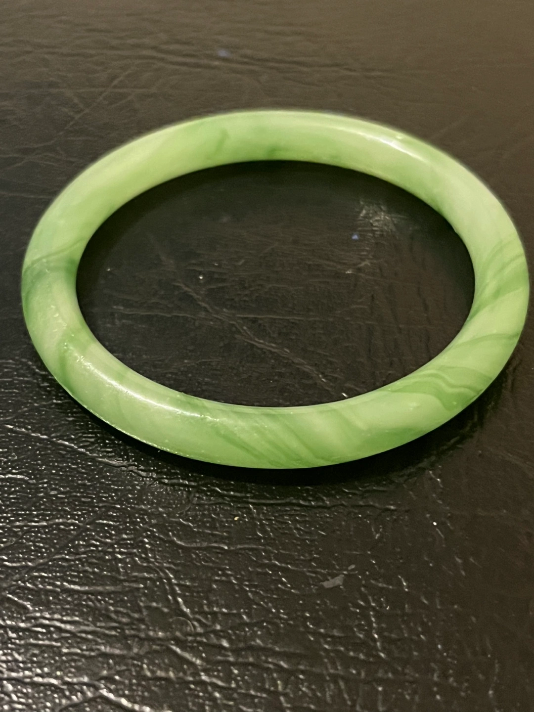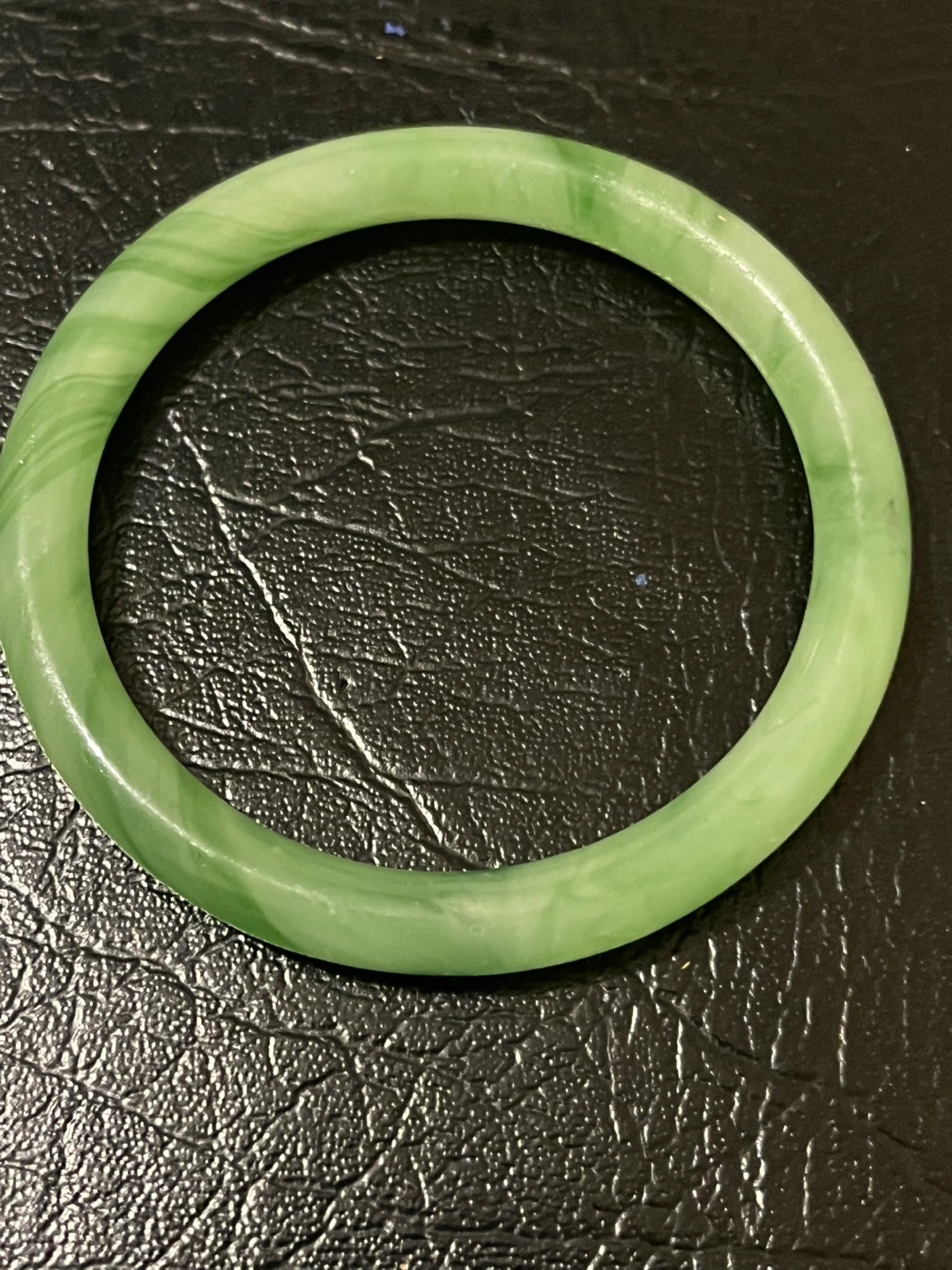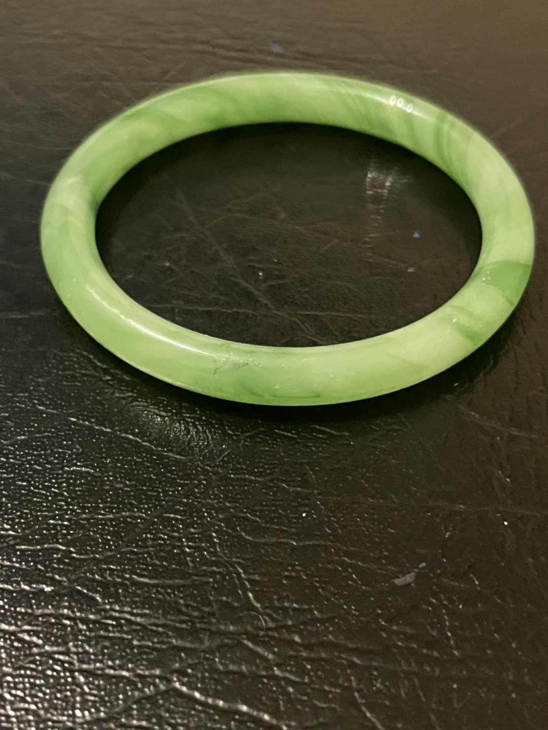 Beautiful green jade bangle bracelet. Simple design. Unique swirling pattern. 100% authentic Jade medium size.