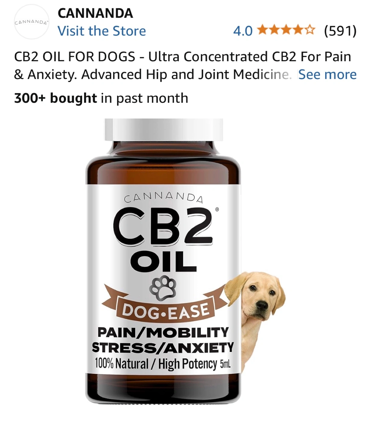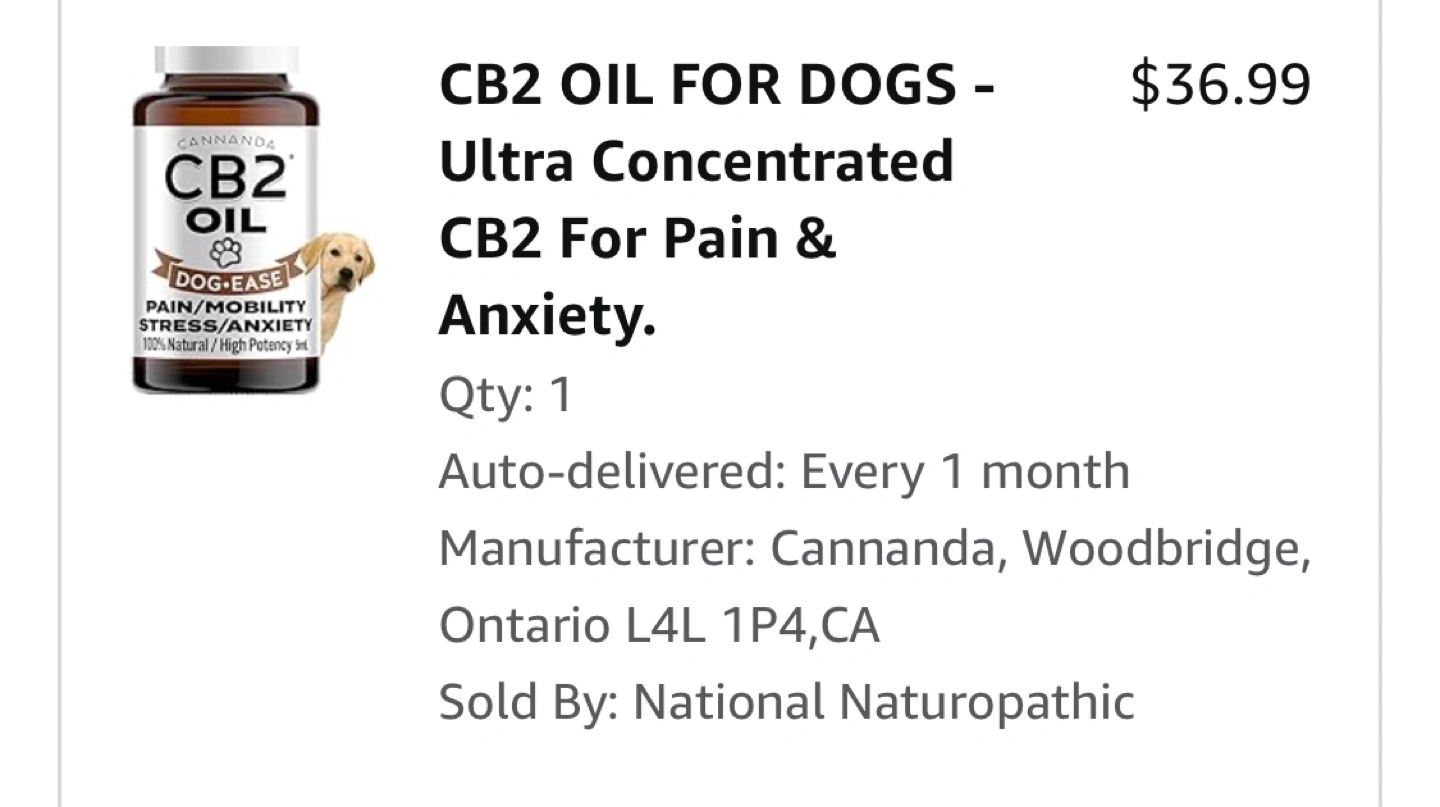 Ultra concentrated CB2 oil for pain and anxiety. For dogs. Advanced hip and joint medicine. 100% natural, high potency. Dog-Ease. My senior dog passed before we opened it. But we used this product religiously, it worked wonders with her arthritis.