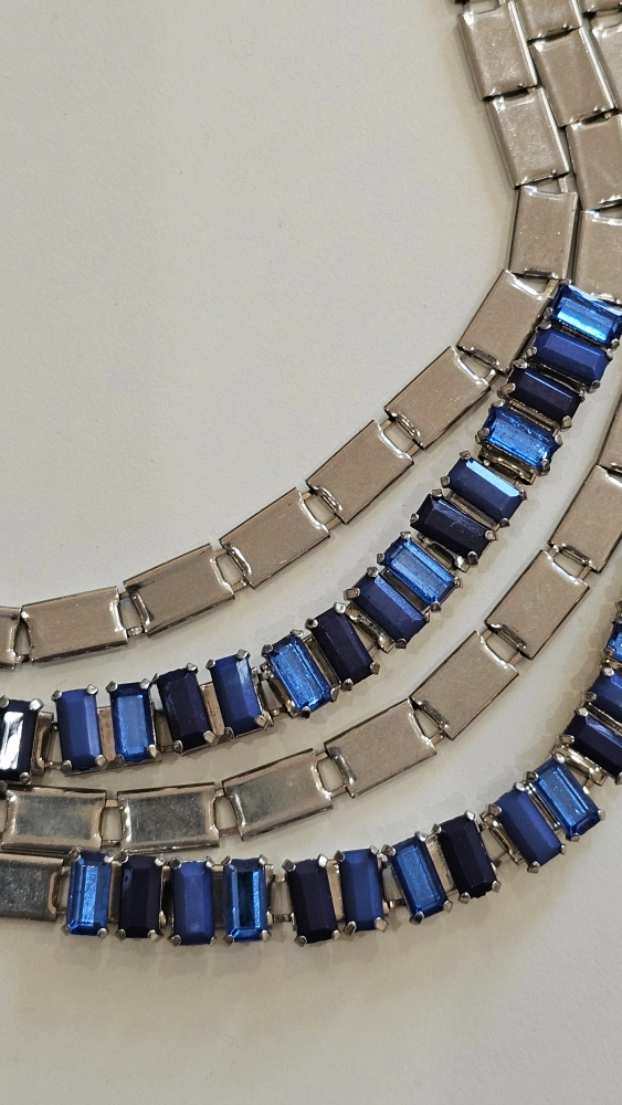 Multi-Strand Silver Tone Necklace with Blue Rhinestones