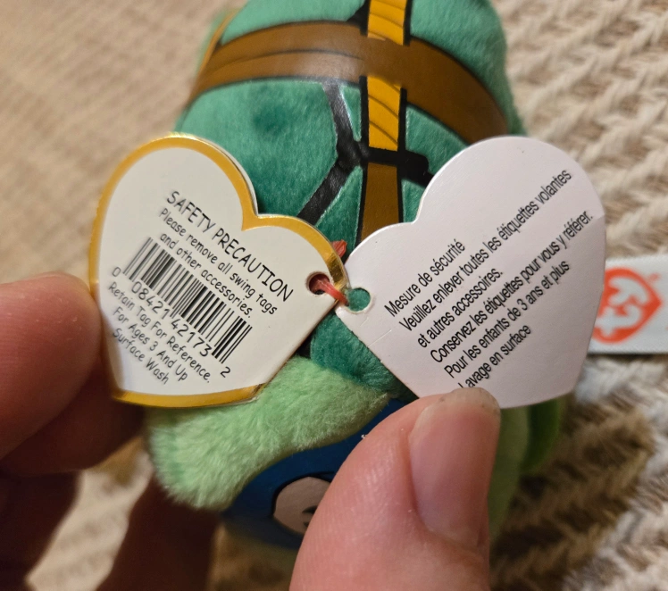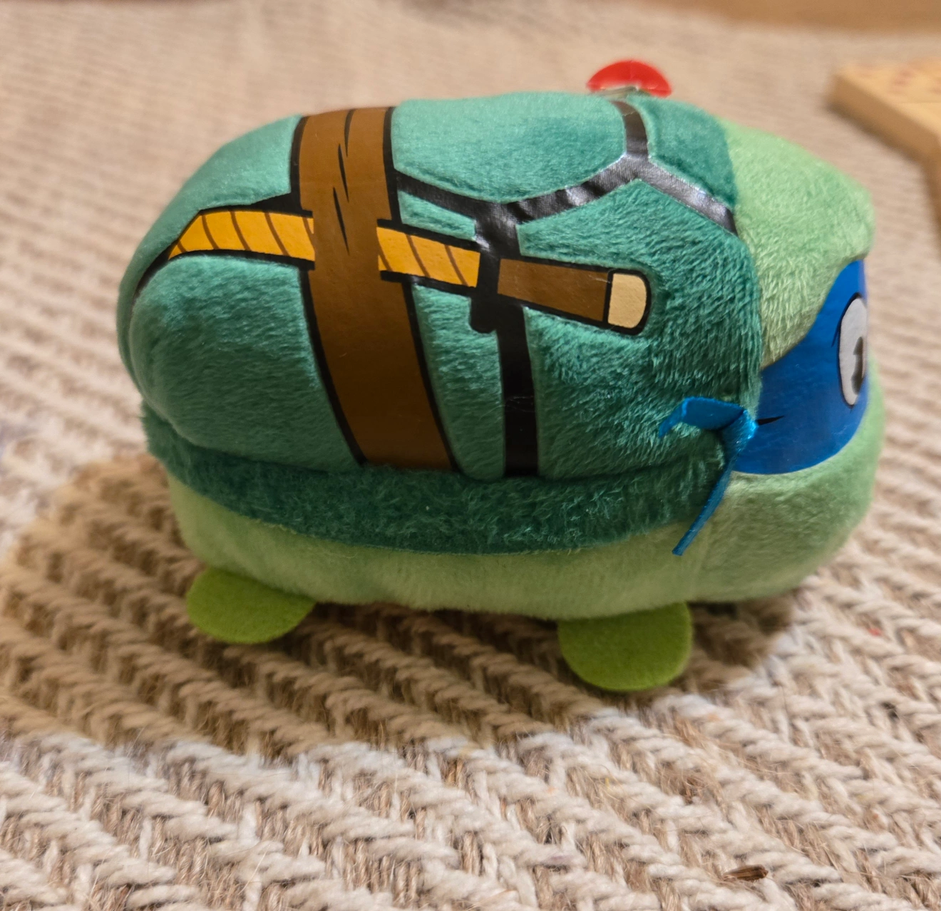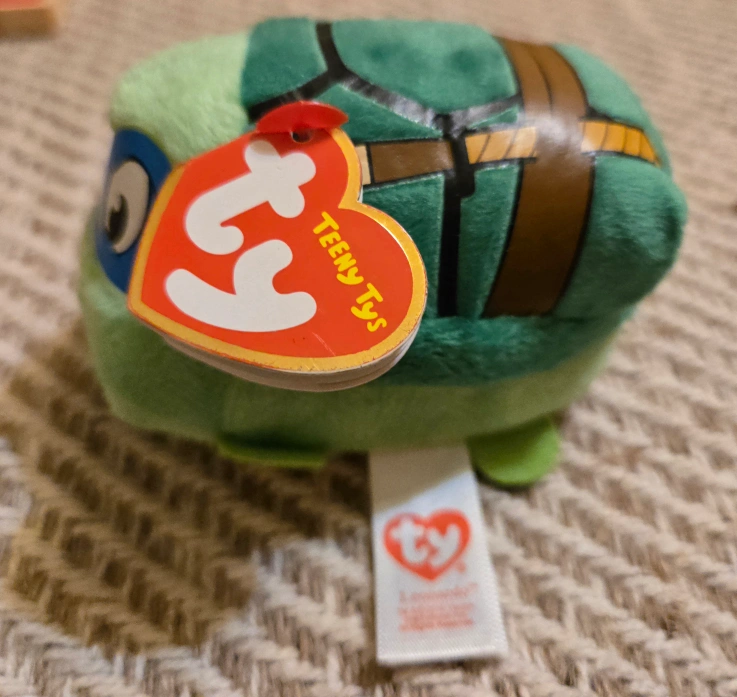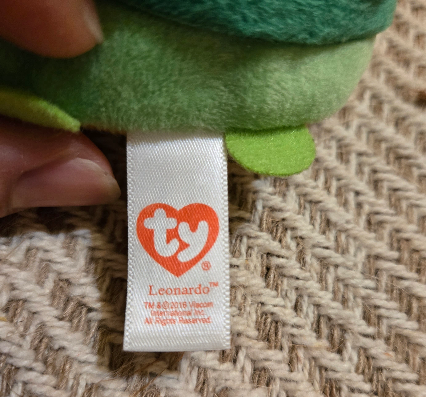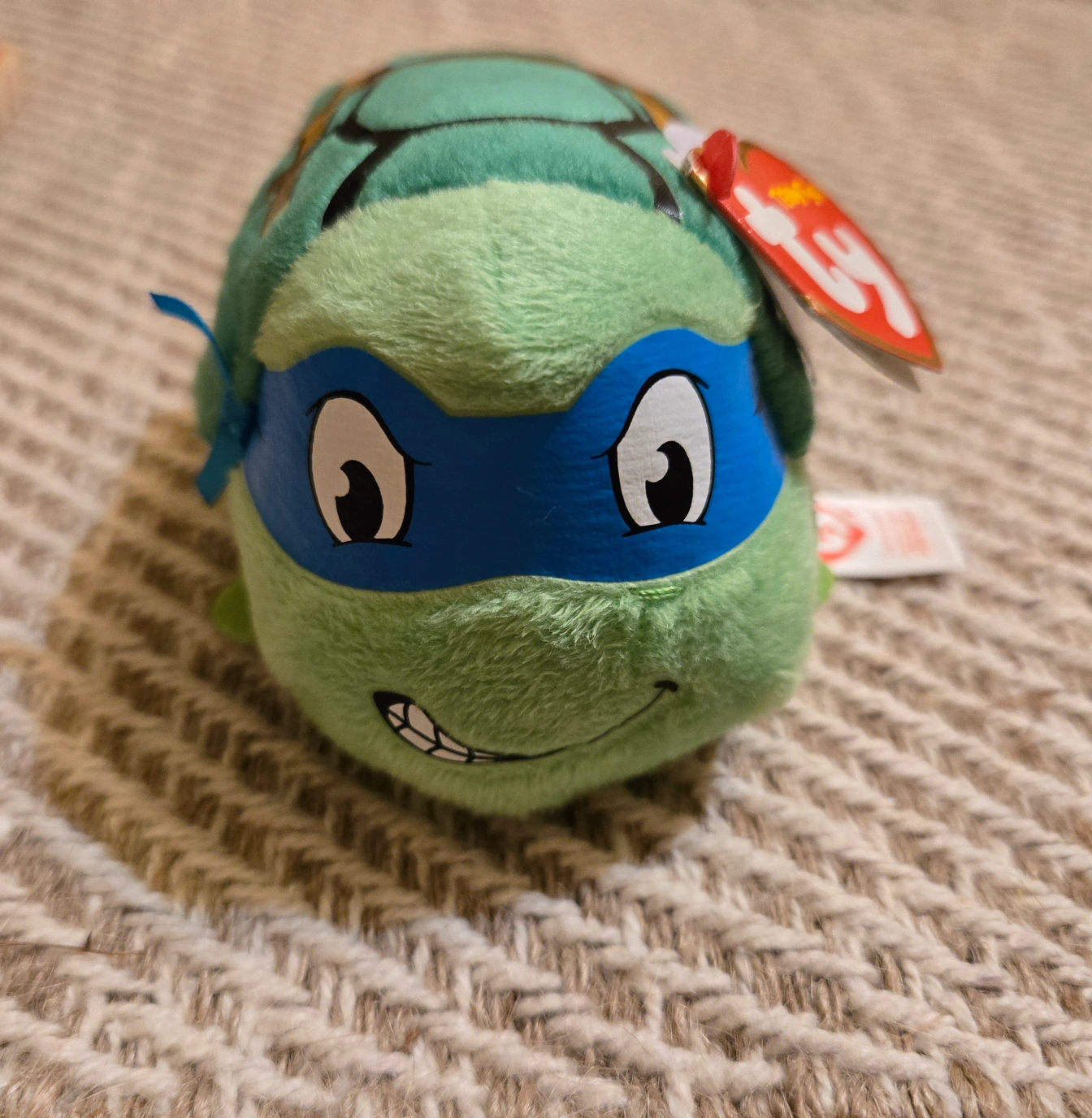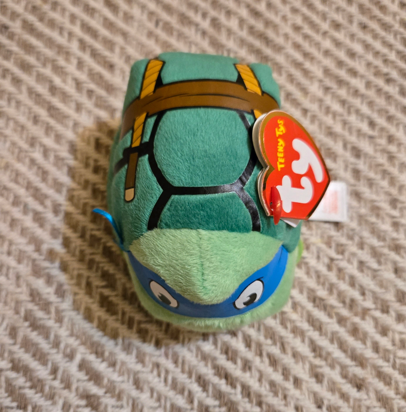 This product is a Ty Teeny Tys plush toy featuring Leonardo from the Teenage Mutant Ninja Turtles character family. It is an approximate 4" plush toy made in China and is recommended for children ages 3 and up. The toy is new with tags and was manufactured in 2016.
