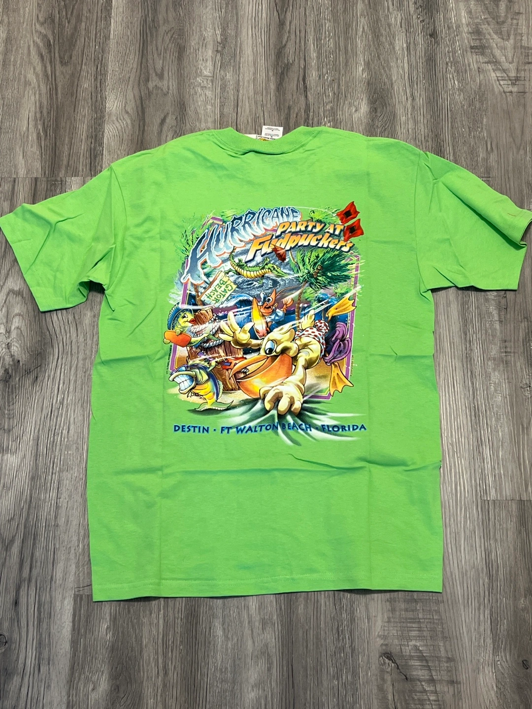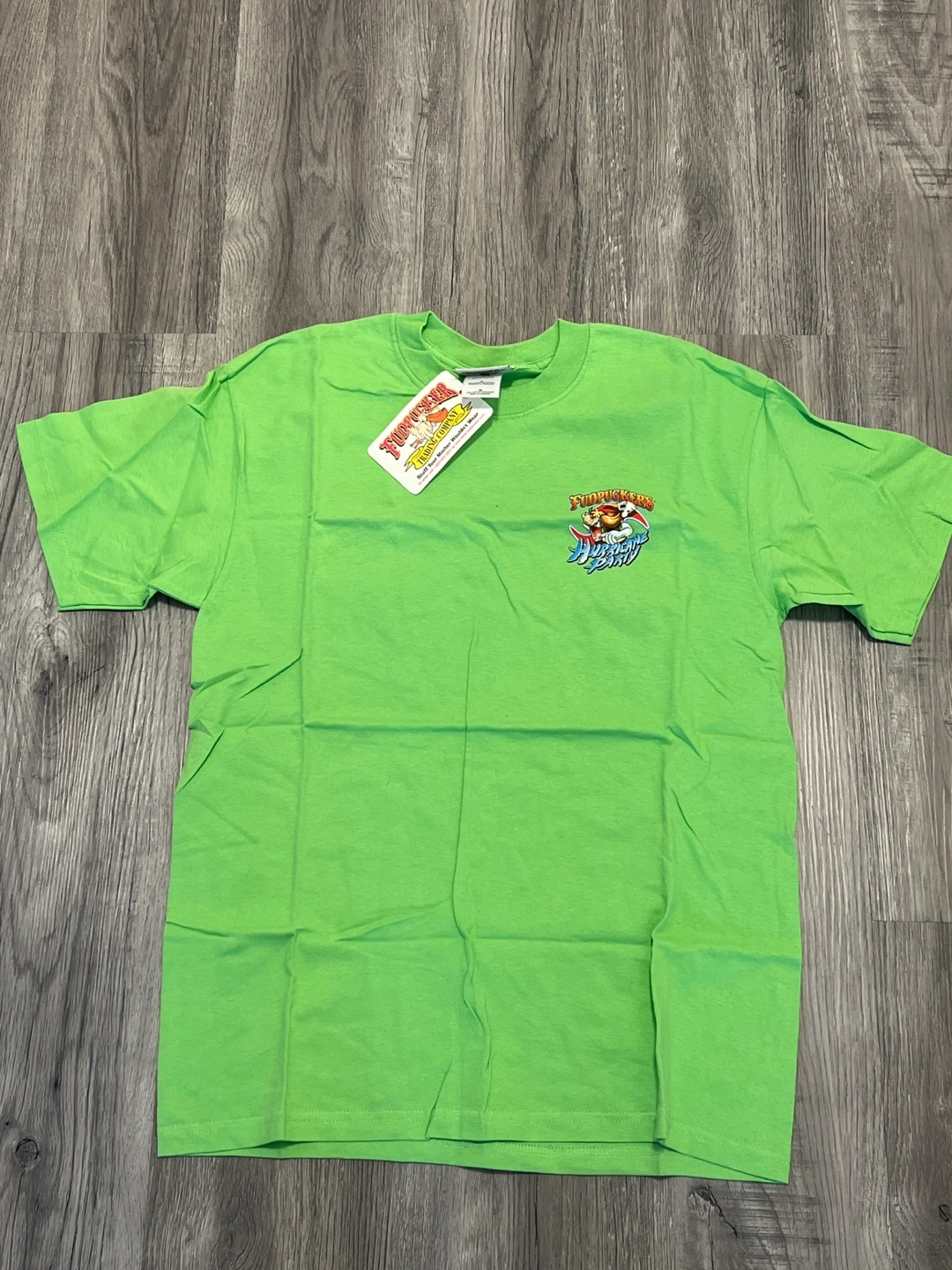 Lime green short sleeve t-shirt. Features a fun design on the back. New with tags. Size medium