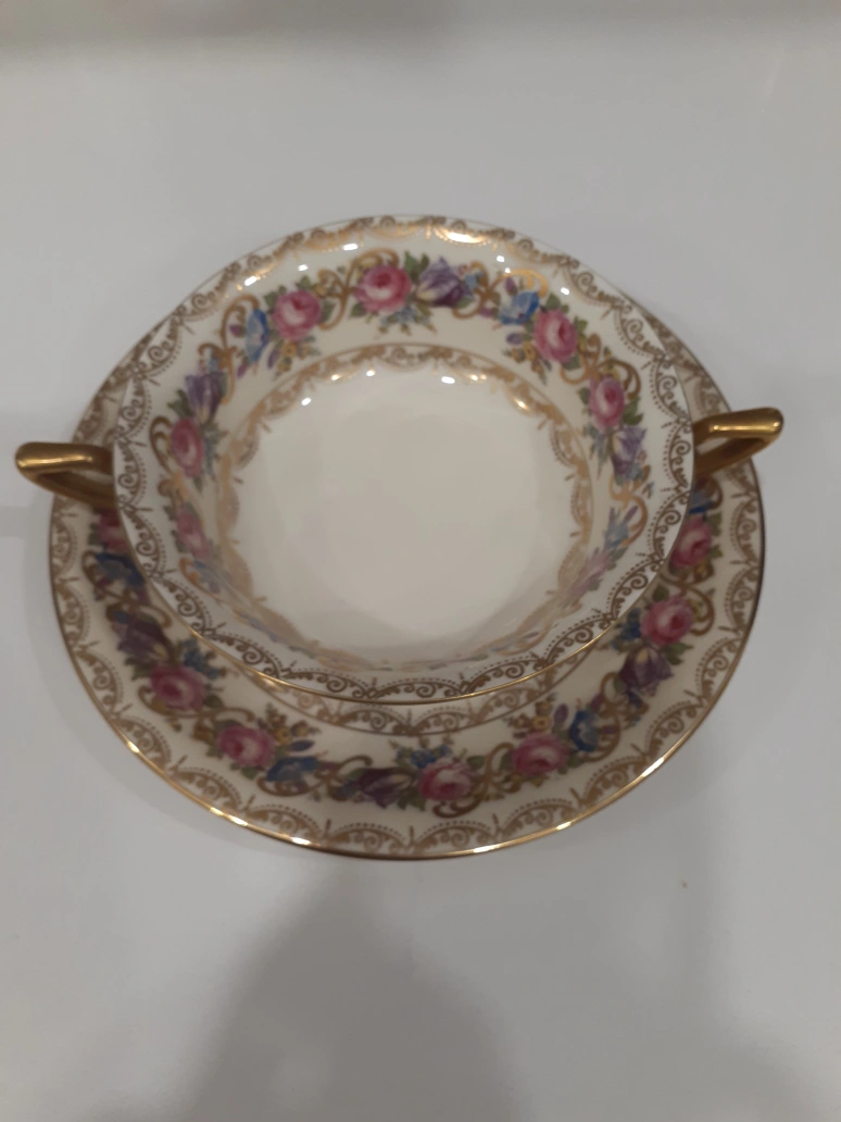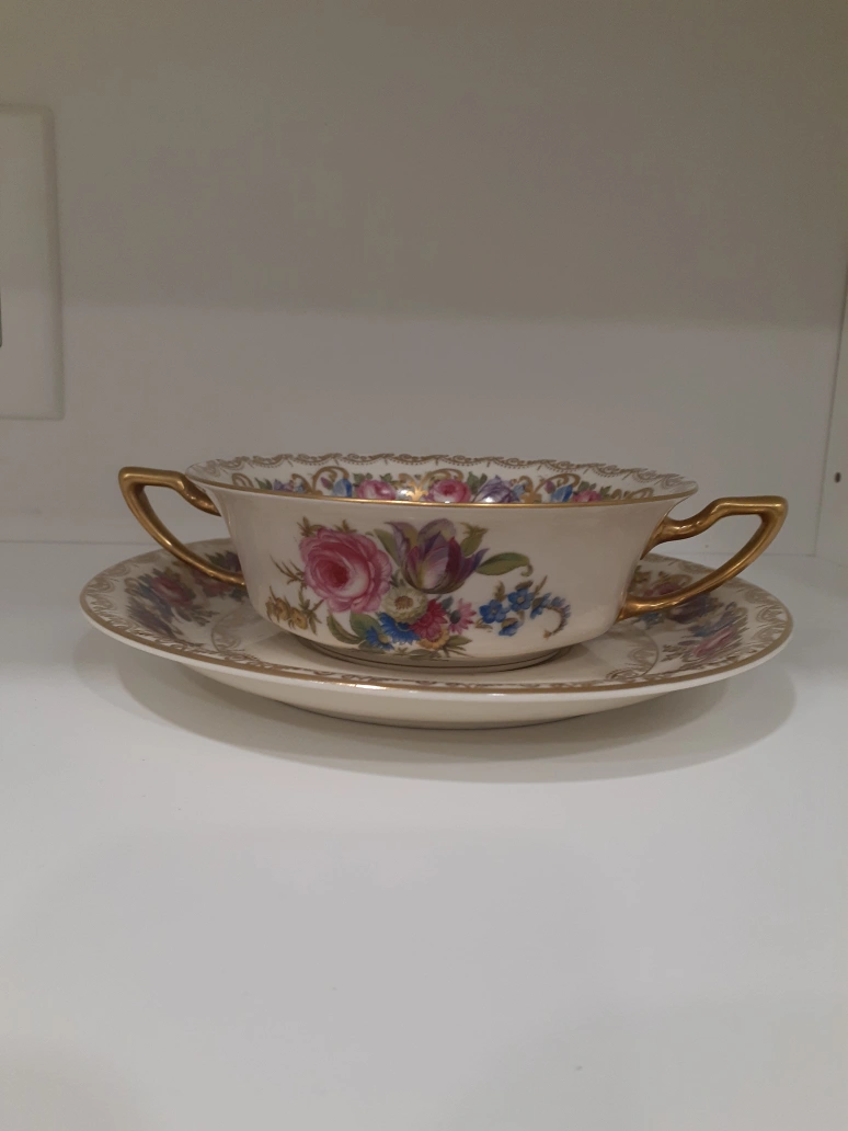 Beautiful set of soup bowl and Saucer by Rosenthal Ivory Bavaria Vienna US patent #72653 Vintage.