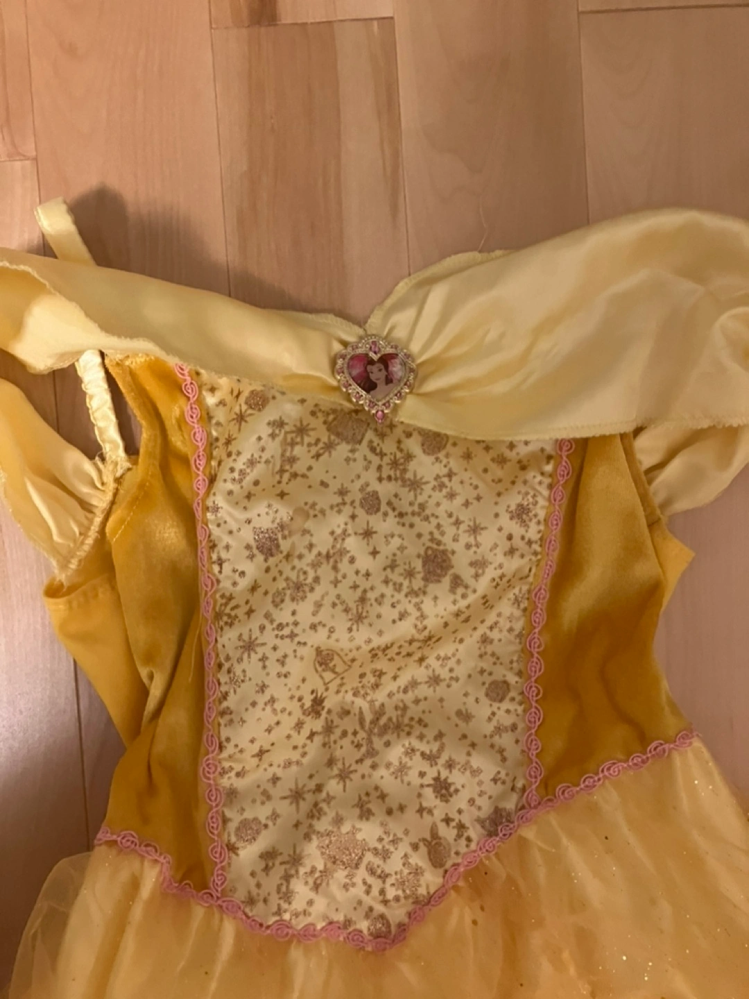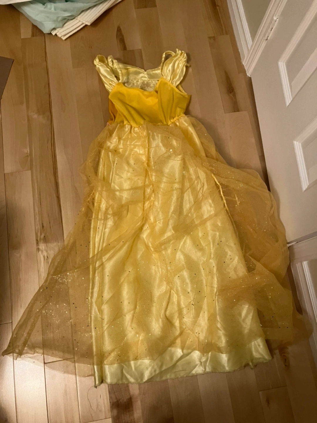 Beautiful yellow Belle dress. Features glitter tulle overlay and satin bodice. Size medium. Some wear.