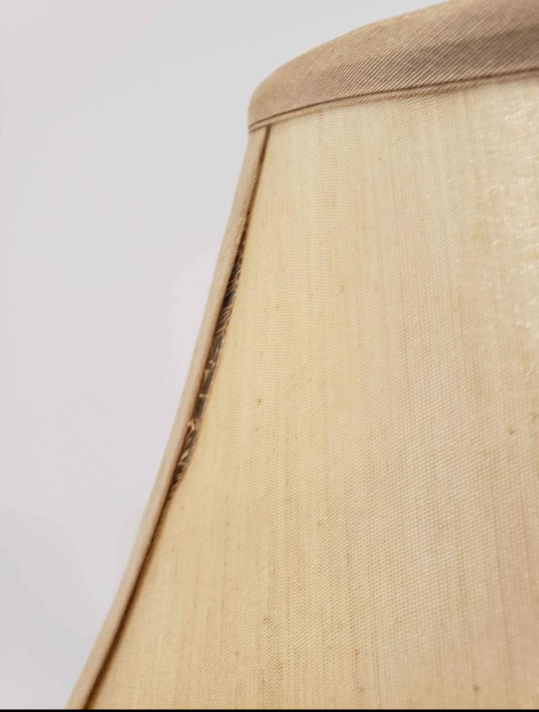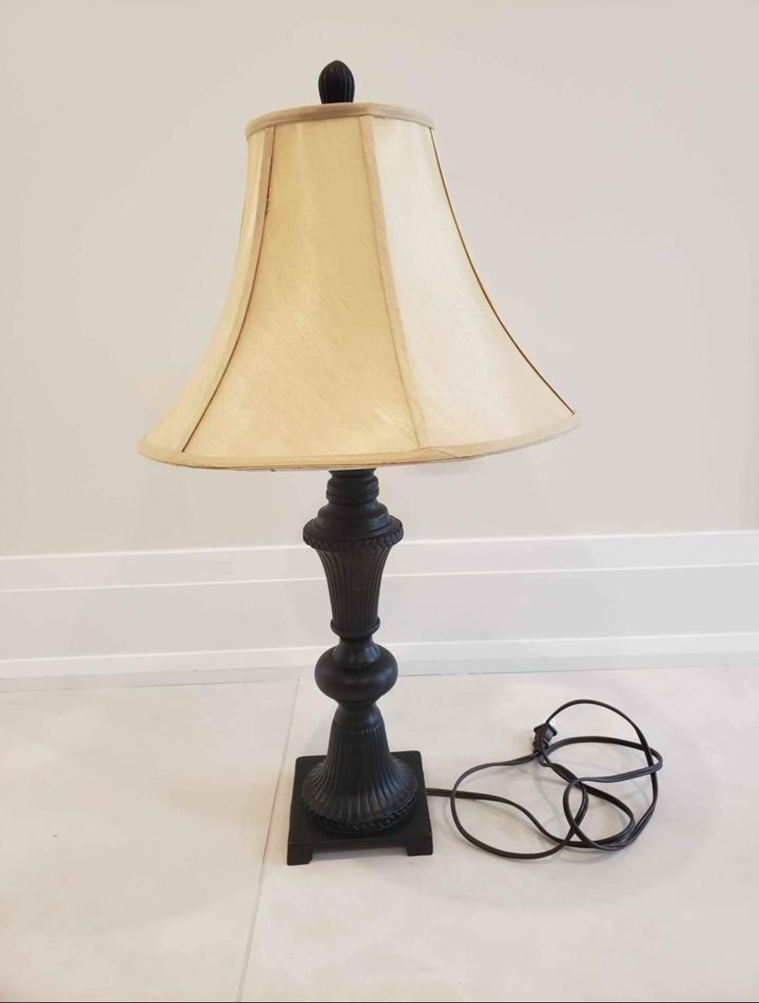 Beautiful table lamp, dark brown finish, beige lampshade. Minor damage to shade. Great for bedside or living room.