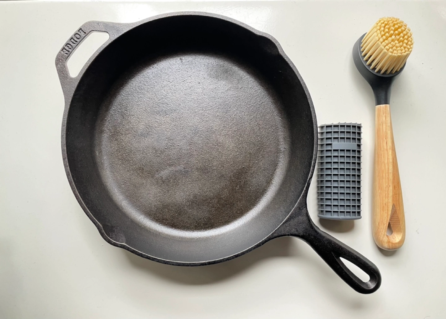 Lodge “Canadiana Series” Cast Iron with scrubbing brush and silicon safety grip.