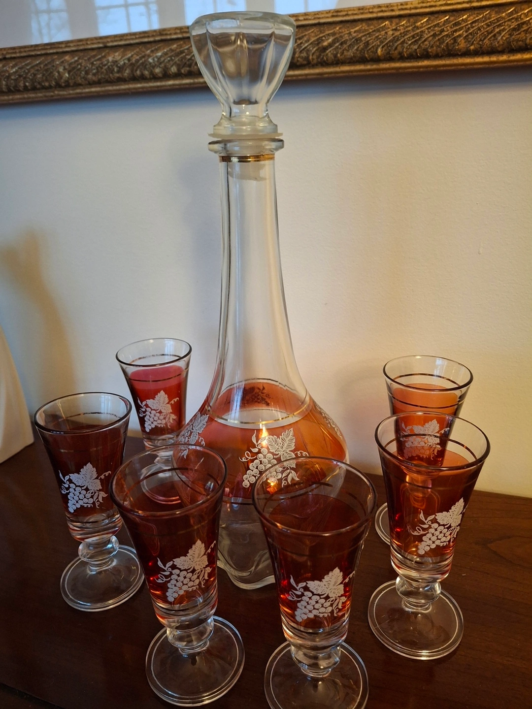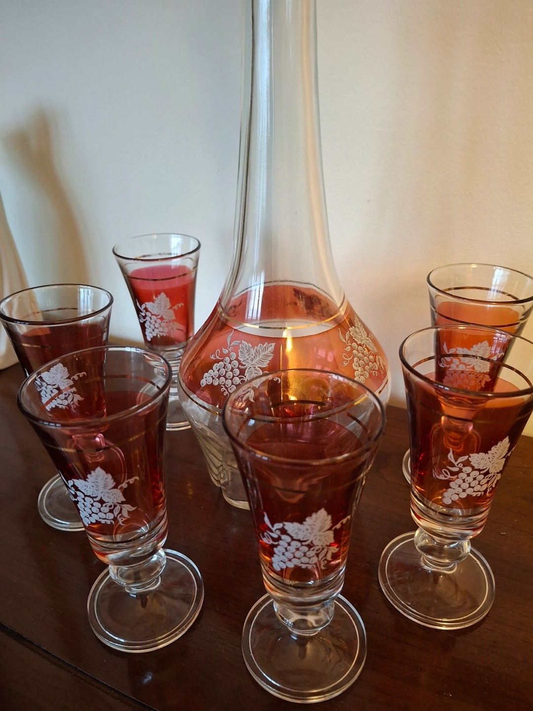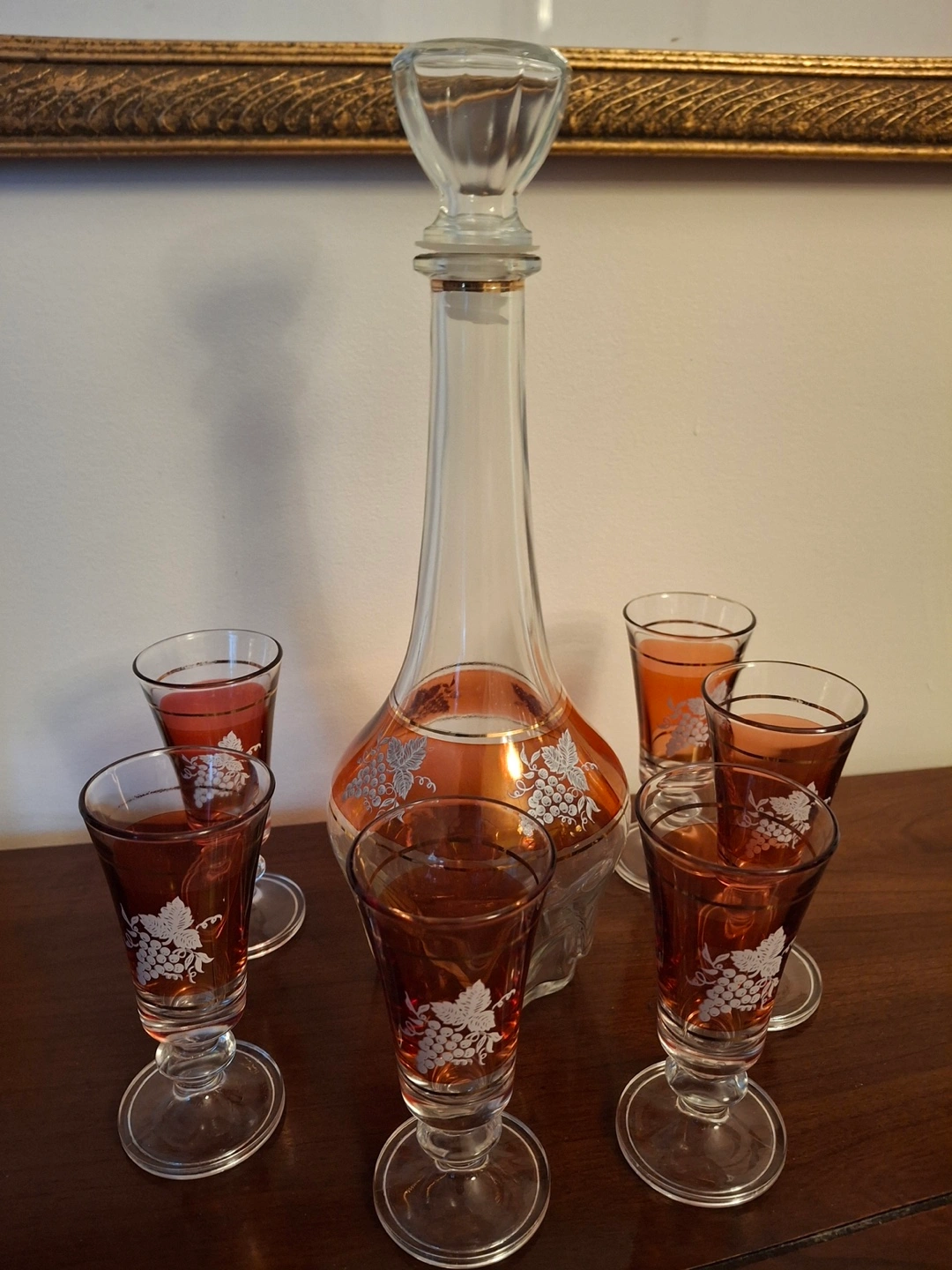 Vintage 1960s Liquor Decanter Set with Six Glasses