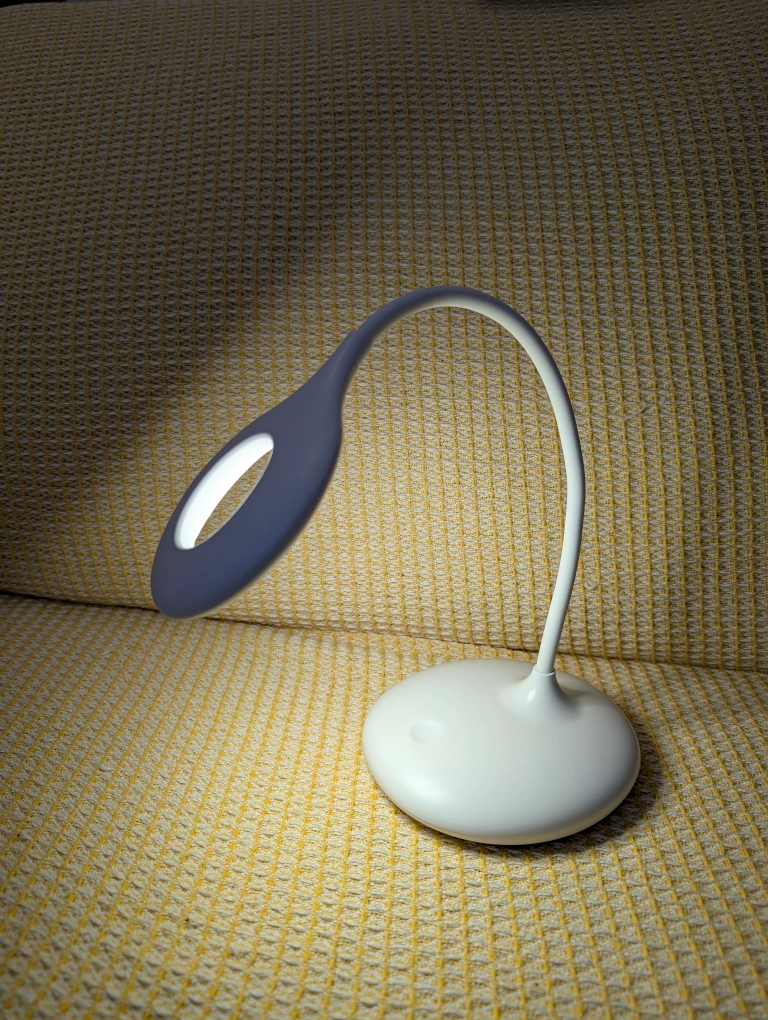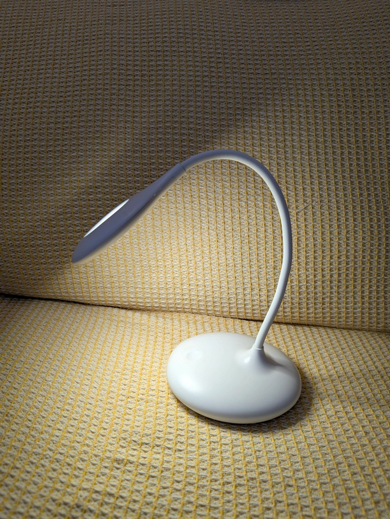 Flexible gooseneck design. USB rechargeable. Compact and lightweight. Ideal for reading or studying. White colour.