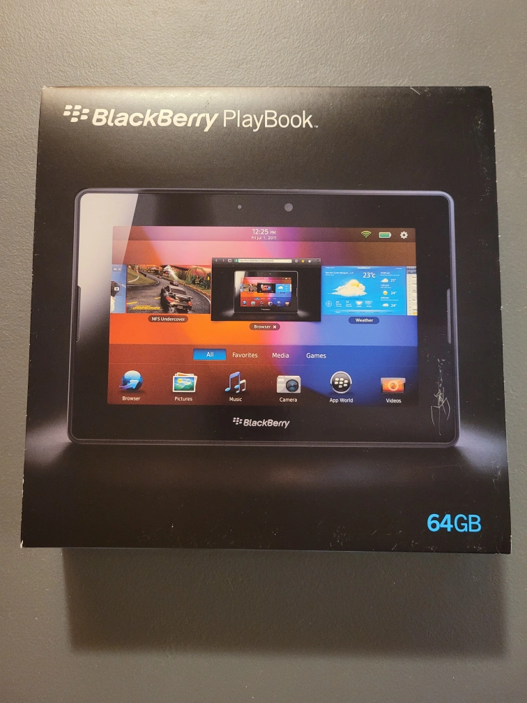 BlackBerry PlayBook 64GB tablet. Includes original box and accessories. Excellent condition. Model: RDJ21WW.