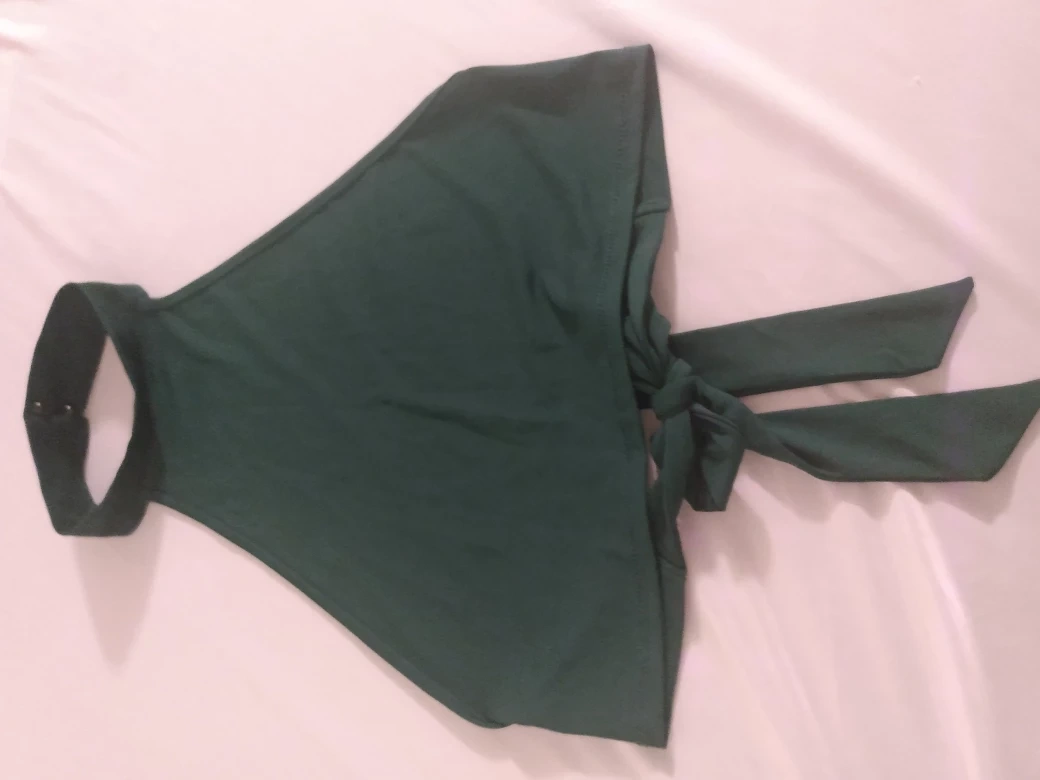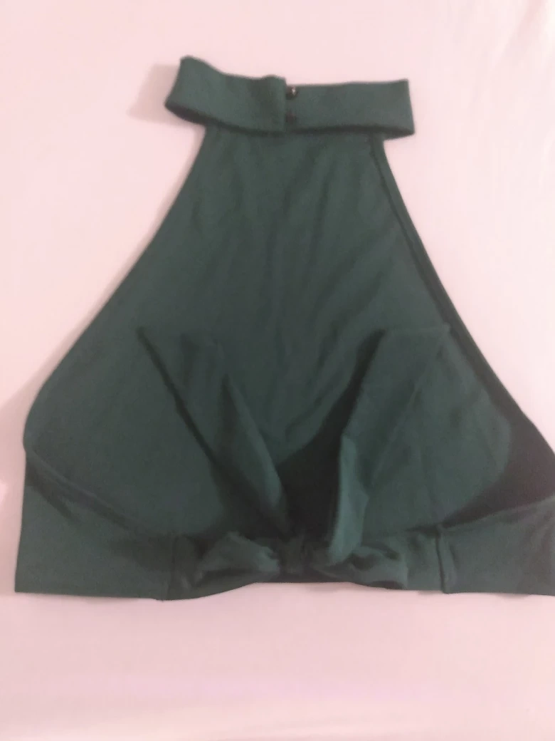 Stylish dark green crop top. Features a button up halter neck design and ties at the back. Simple and elegant, perfect for a night out or casual wear. XL. 90% Polyester10%Spandex.