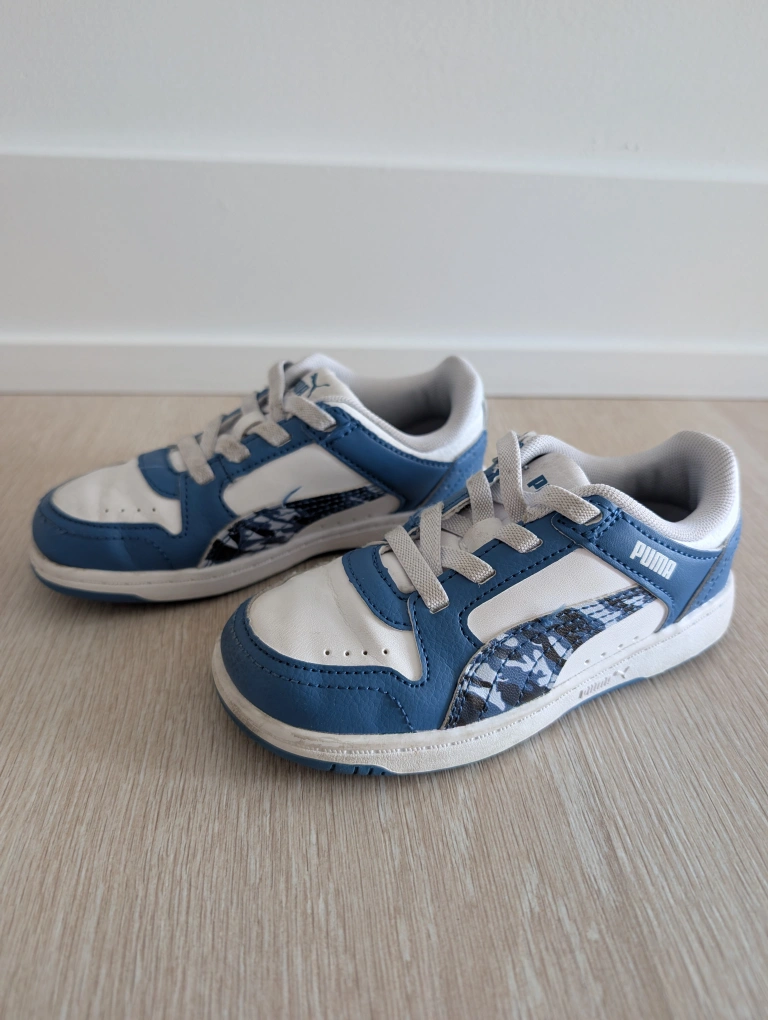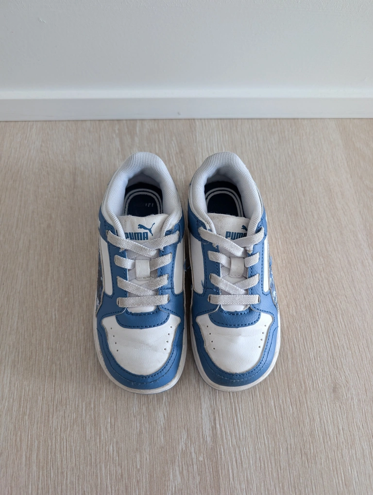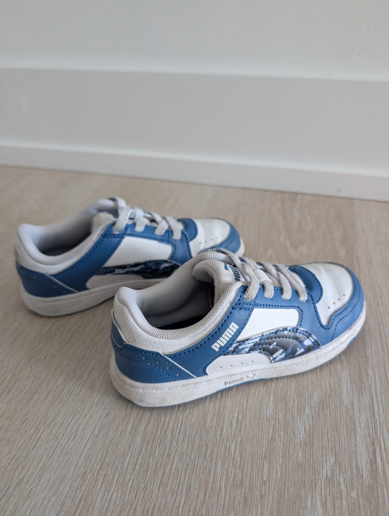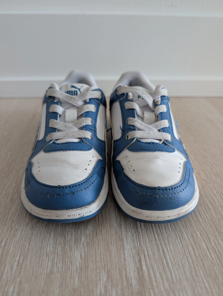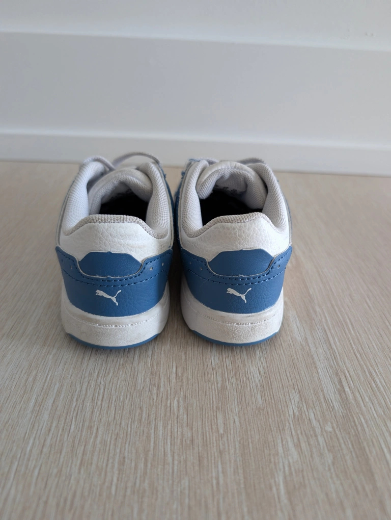 White and Blue Puma toddler sneakers. Lace-up closure. Great condition. Size 10 = European size 27. Smoke and pet free home.