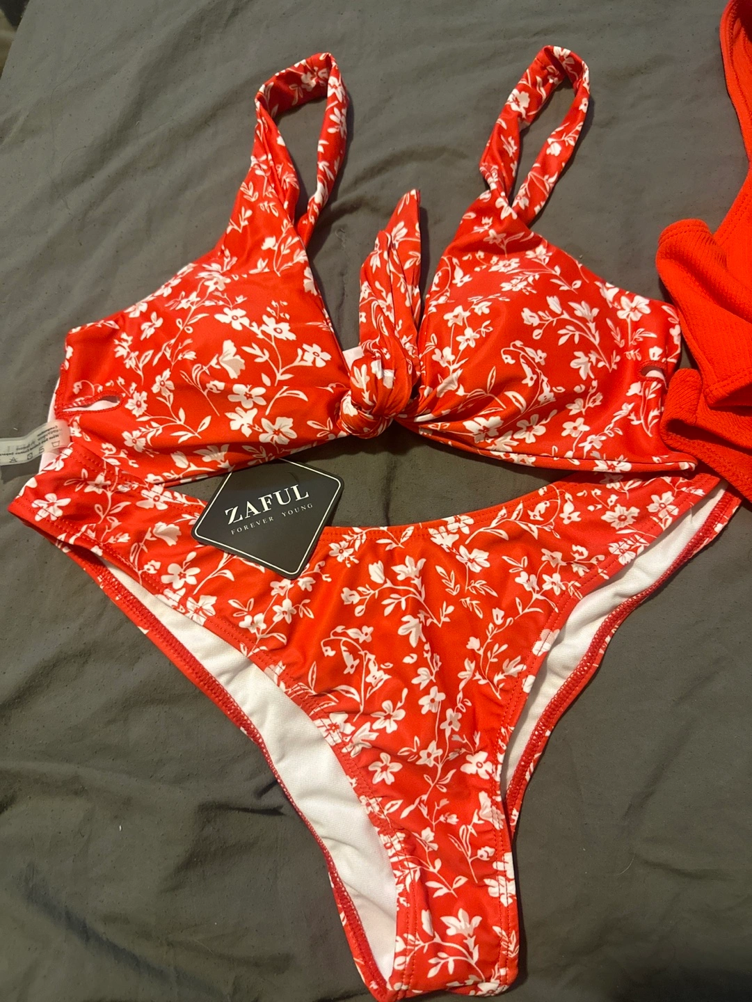 Zaful Two-Piece Bikini Set - Orange Floral & Solid