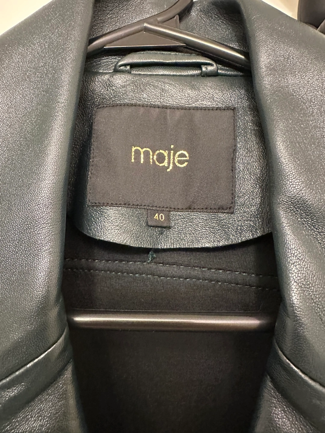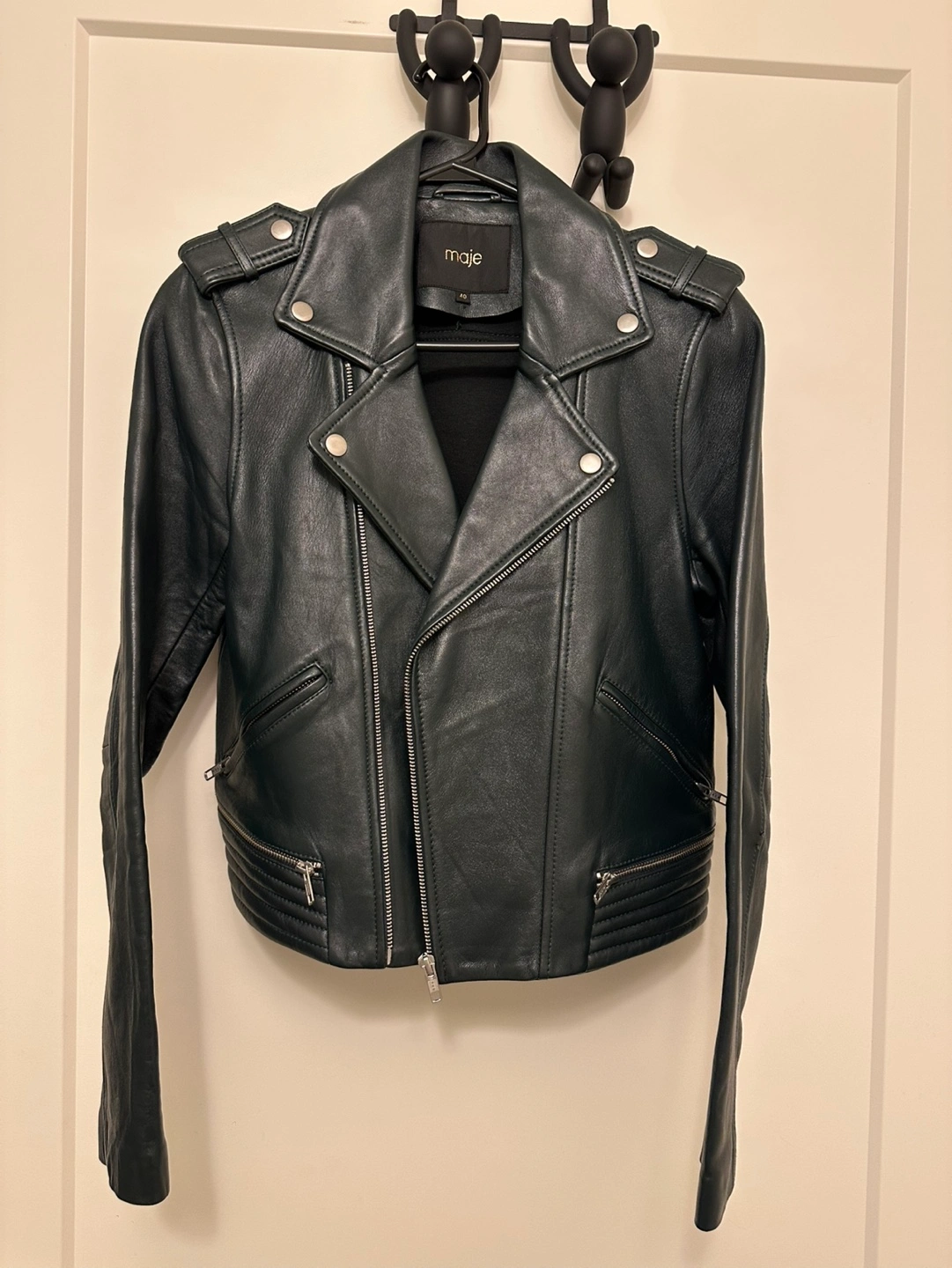 Beautiful dark green leather moto jacket! Bought it from Maje at eaton location a few years ago, paid over $400, haven’t worn much. Amazing condition! Size 40.