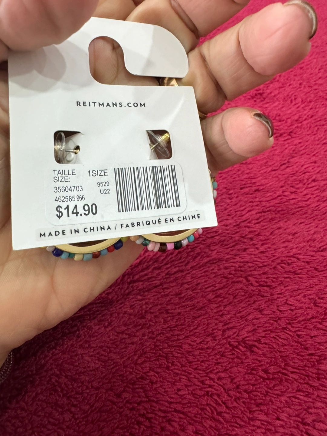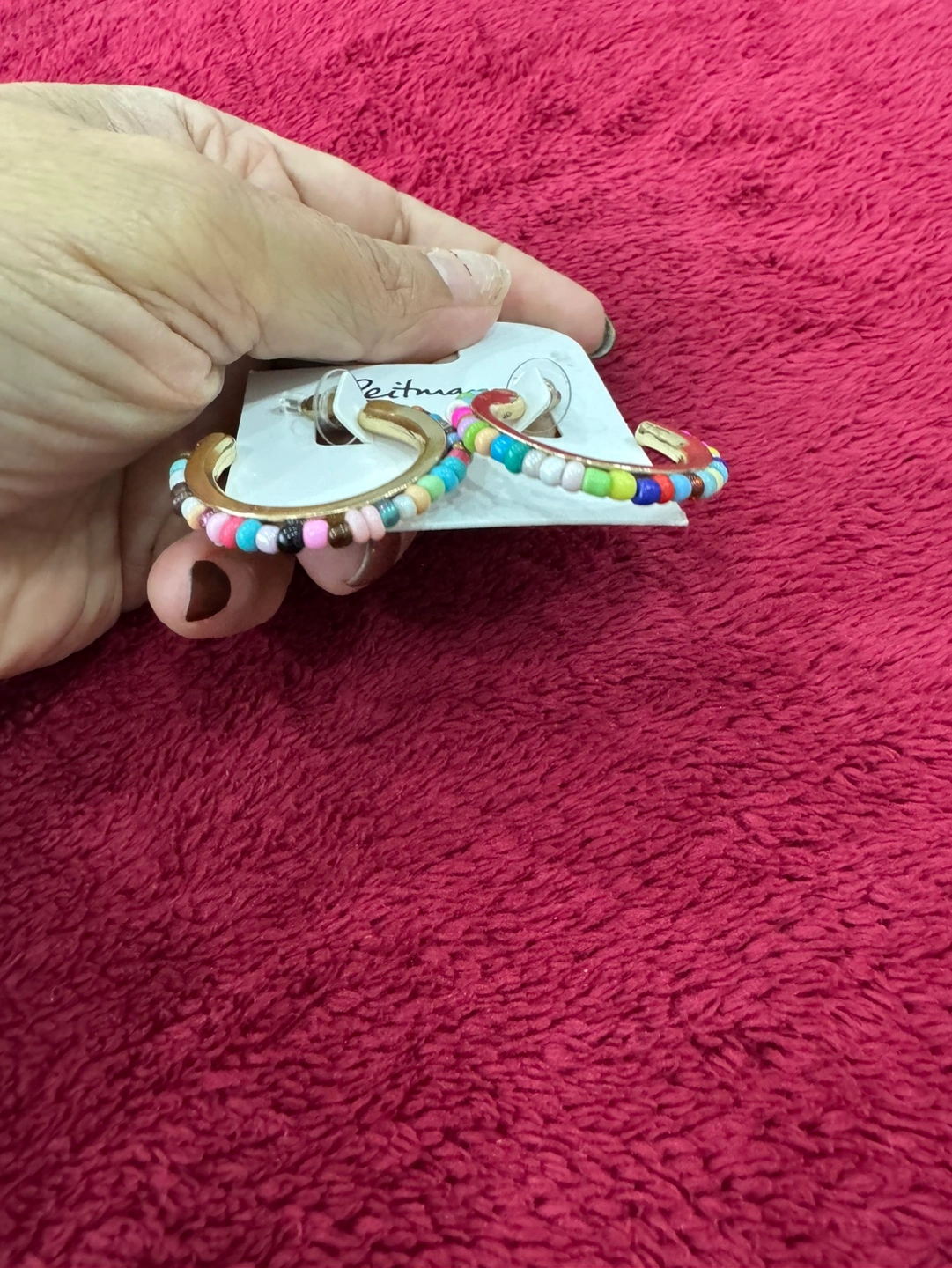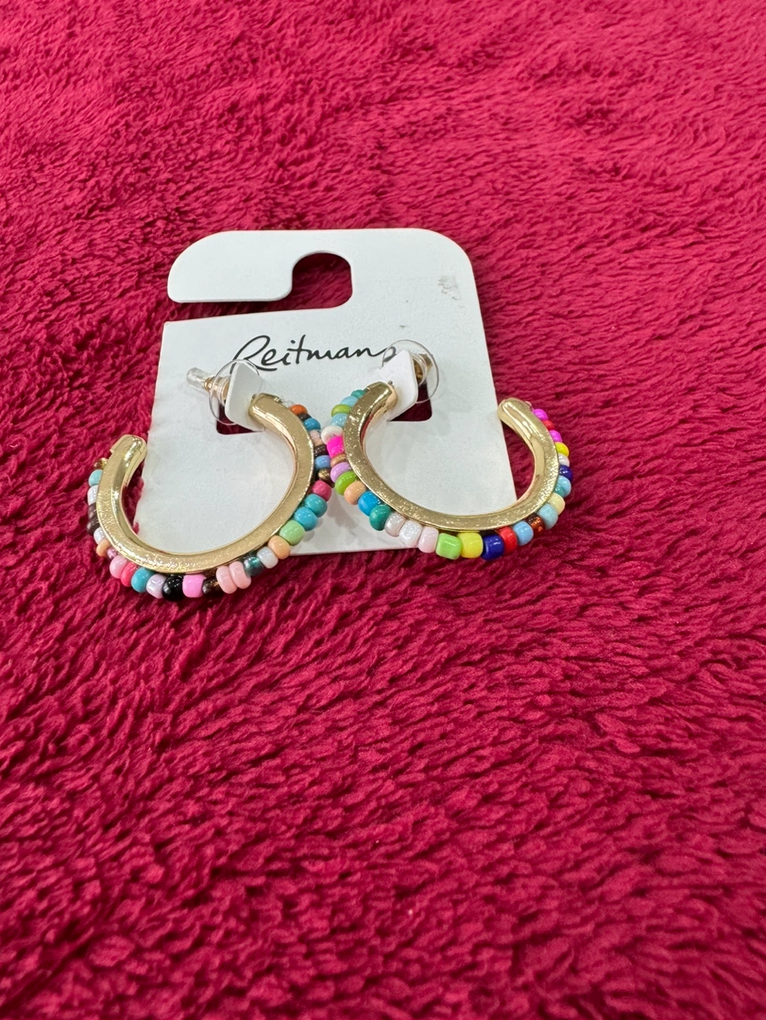 Gold hoop earrings. Multicoloured beaded accents. Lightweight and fun. Perfect for adding a pop of colour to any outfit.2$ each