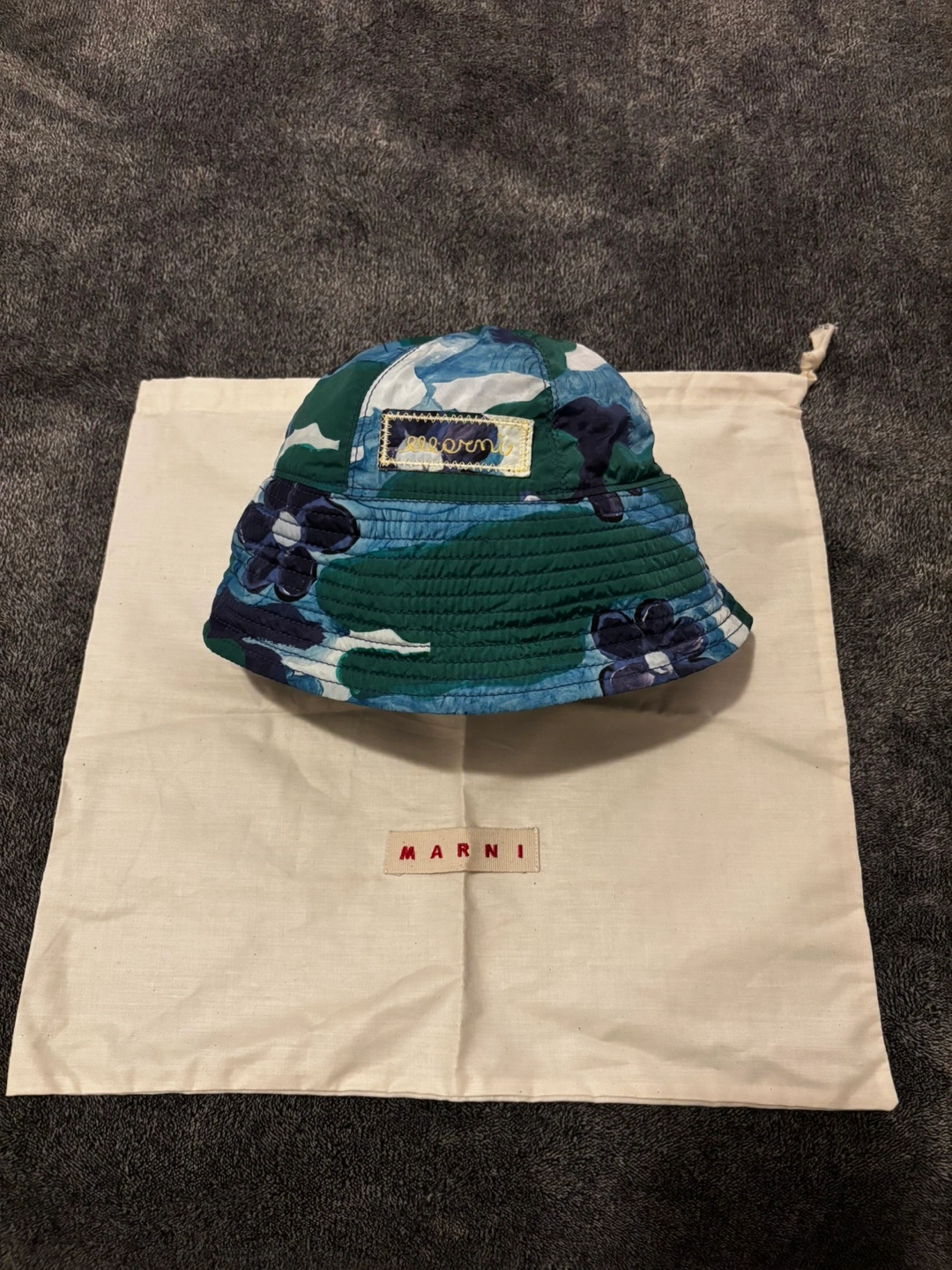 Marni bucket hat. Features a floral print. Comes with dust bag,plastic bag and tags. Made in Italy.